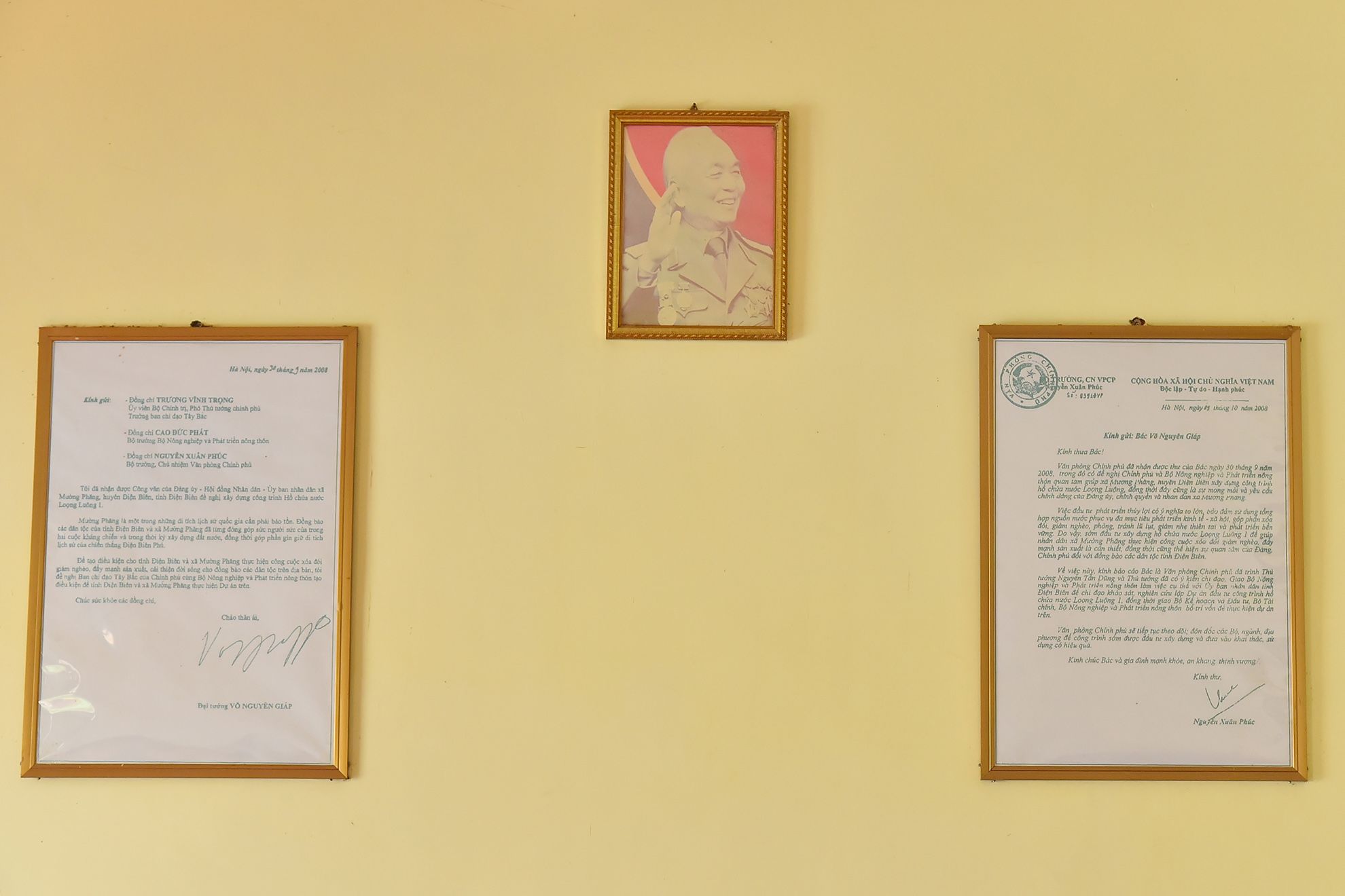 Thư của Đại tướng Võ Nguyên Giáp gửi Văn phòng Chính phủ, Ban chỉ đạo Tây Bắc của Chính phủ, Bộ Nông nghiệp và Phát triển nông thôn đề nghị đáp ứng nguyện vọng của người dân xã Mường Phăng về việc xây dựng hồ chứa thủy lợi Loọng Luông và thư phúc đáp của Văn phòng Chính phủ.