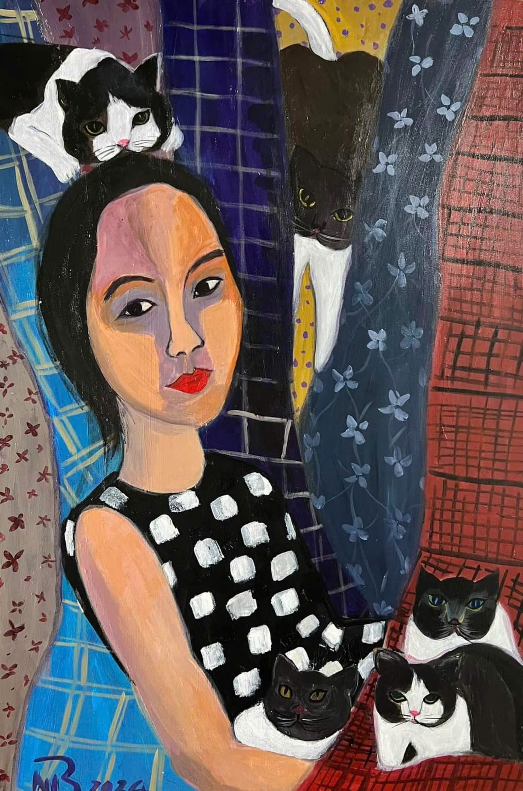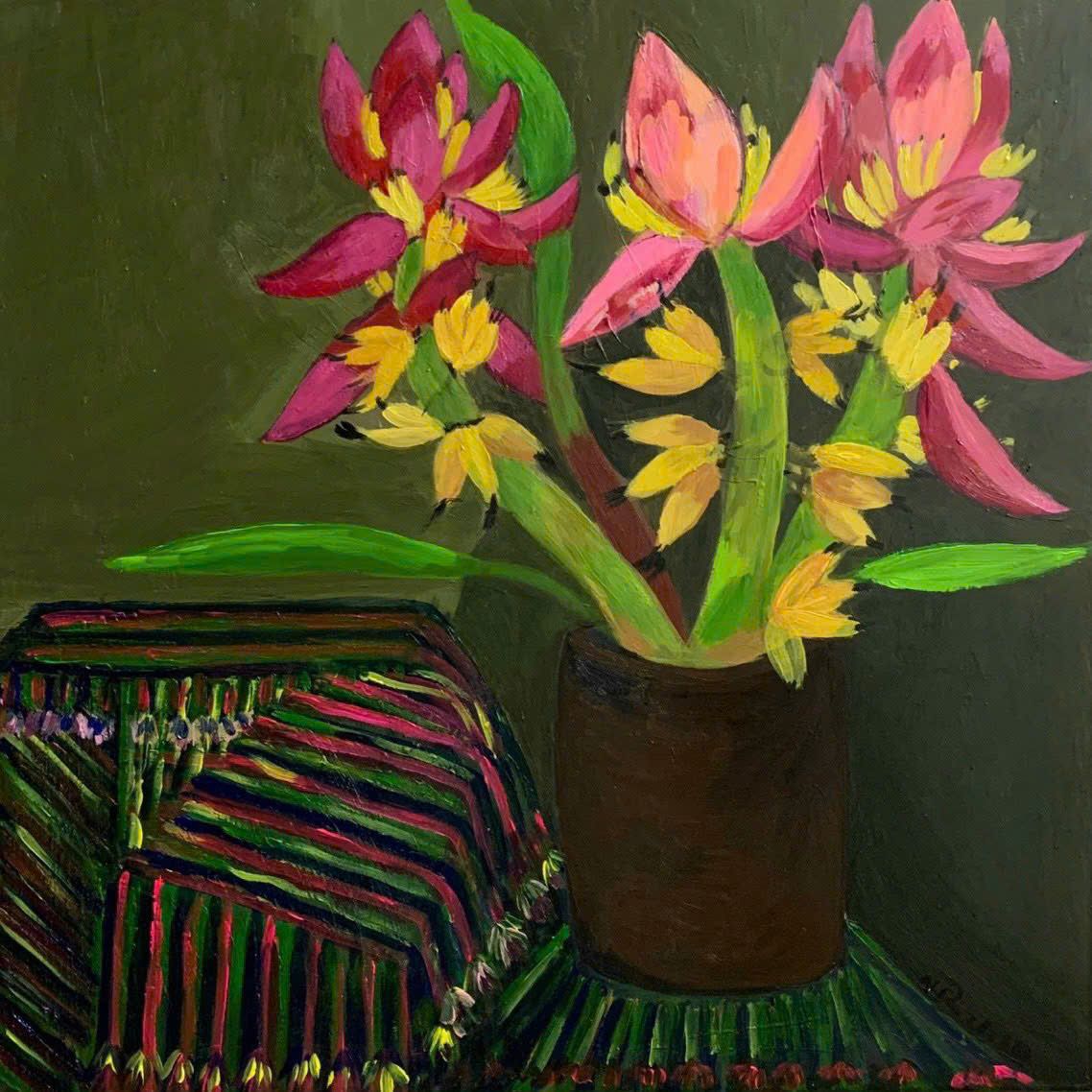 Tác phẩm: "Bạn tôi". Kích thước: 70x80. Chất liệu: Acrylic trên toan. Sáng tác năm 2023.