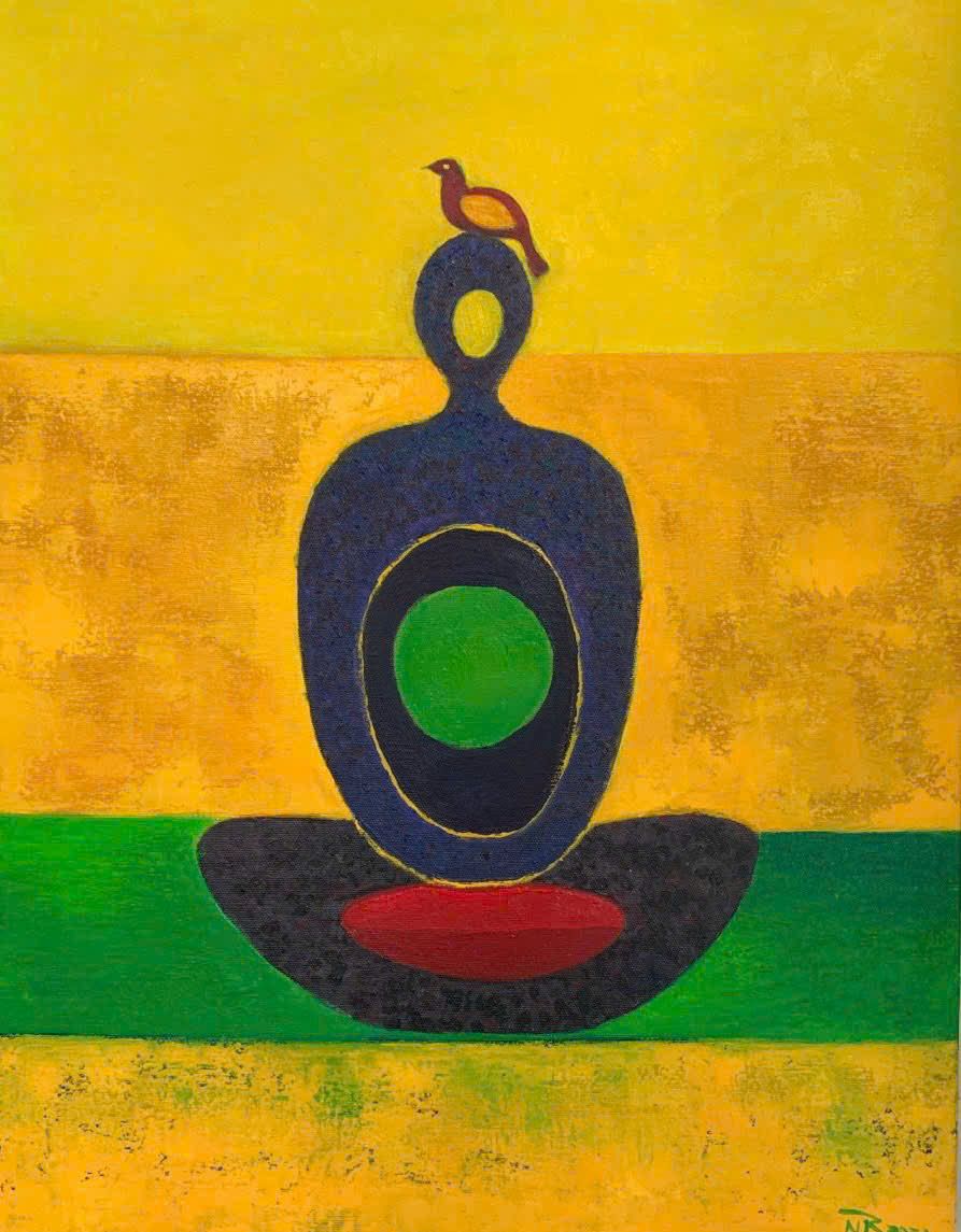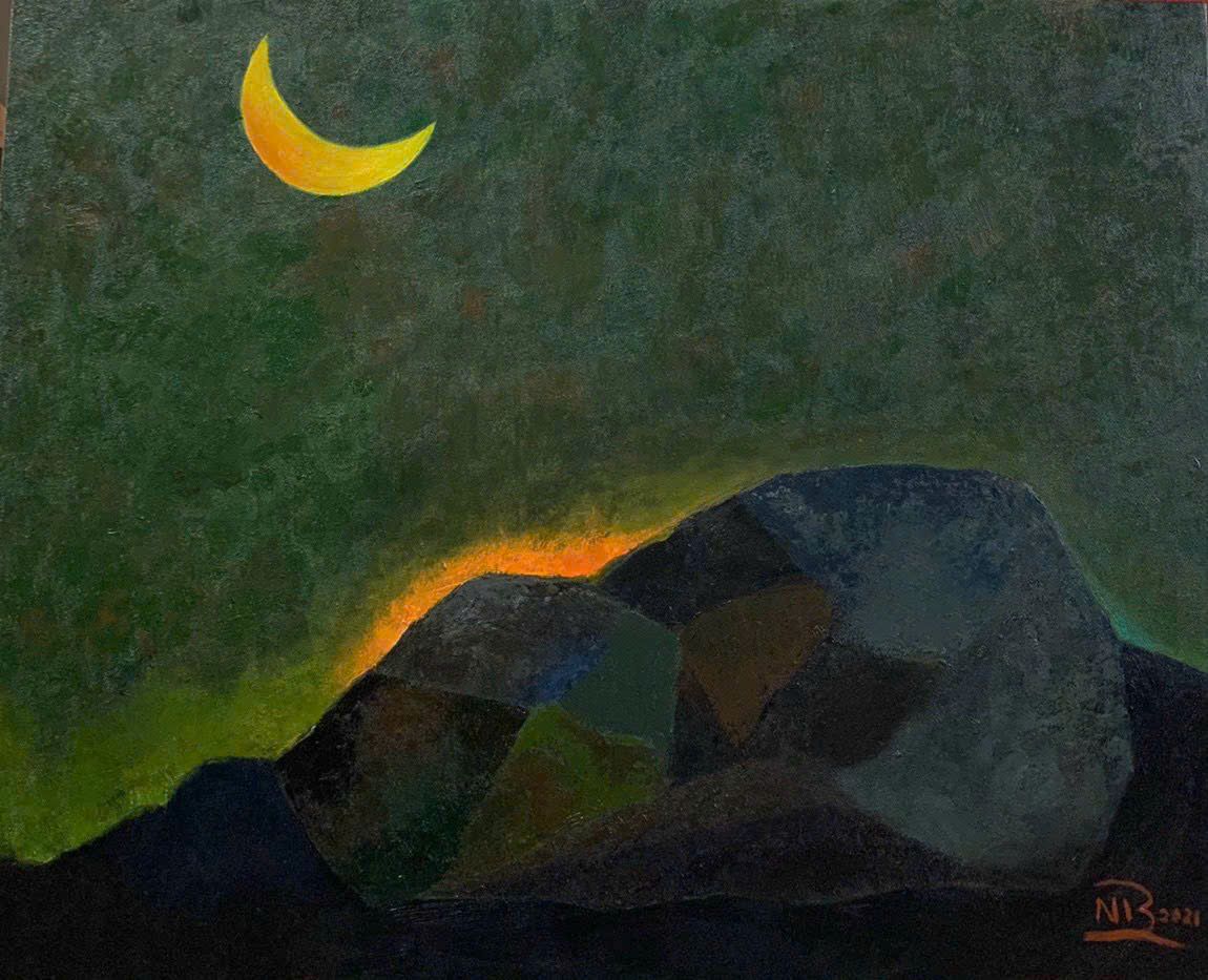 Tác phẩm: "Tảng đá đang thiền". Kích thước 80x80. Chất liệu: Acrylic trên toan. Sáng tác năm 2022.
