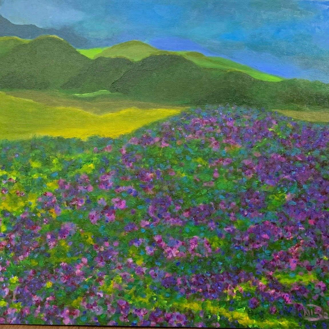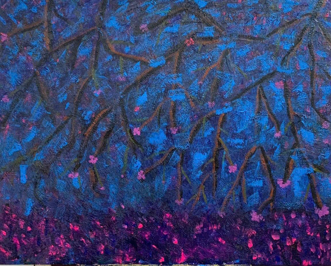 Tác phẩm: "Đồi hoa tím". Kích thước: 80x100. Chất liệu: Acrylic trên toan. Sáng tác năm 2020.