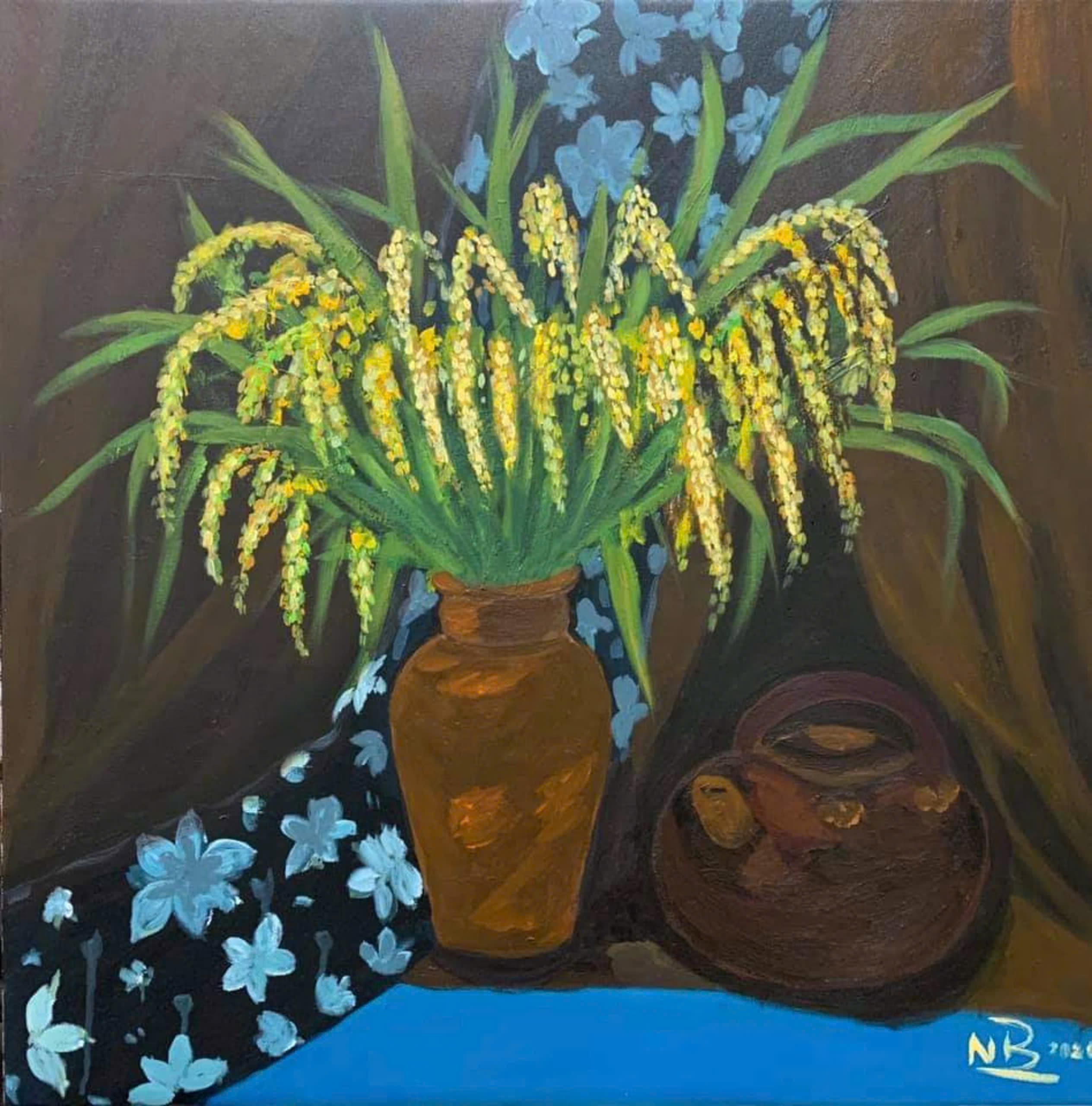 Tác phẩm: "Hoa lúa". Kích thước: 40x40. Chất liệu: Acrylic trên toan. Sáng tác năm 2019.