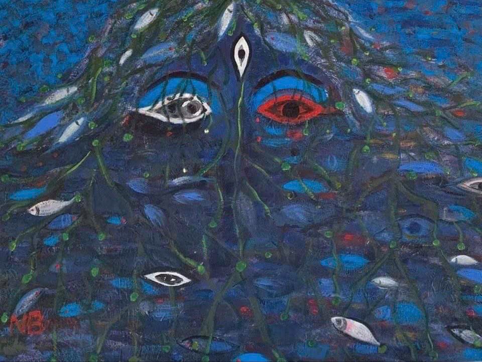 Tác phẩm: "Sự im lặng biếc xanh". Kích thước: 80x100. Chất liệu: Acrylic trên toan.