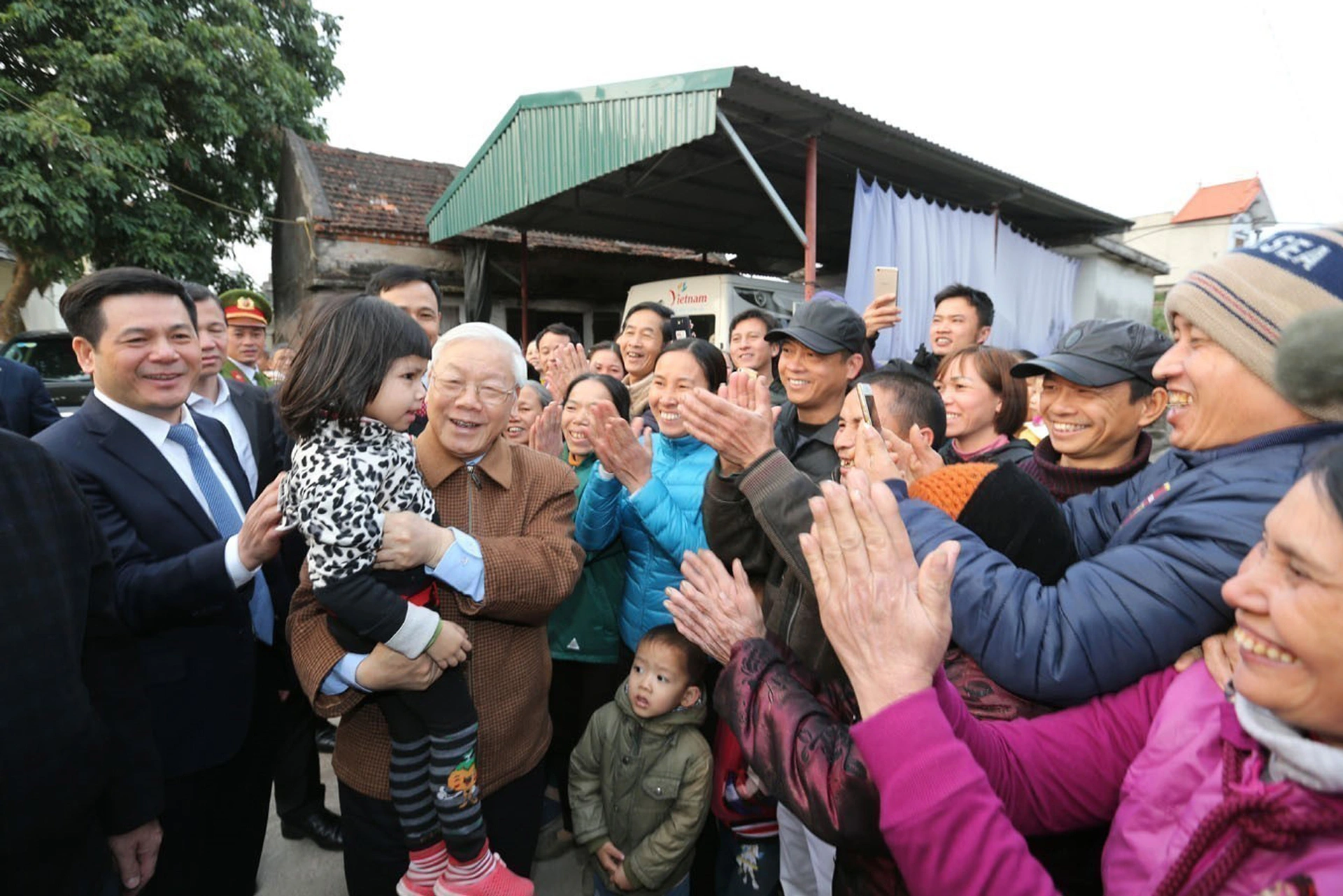Tổng Bí thư Nguyễn Phú Trọng thăm hỏi nhân dân huyện Thái Thụy, tỉnh Thái Bình (tháng 2/2018).