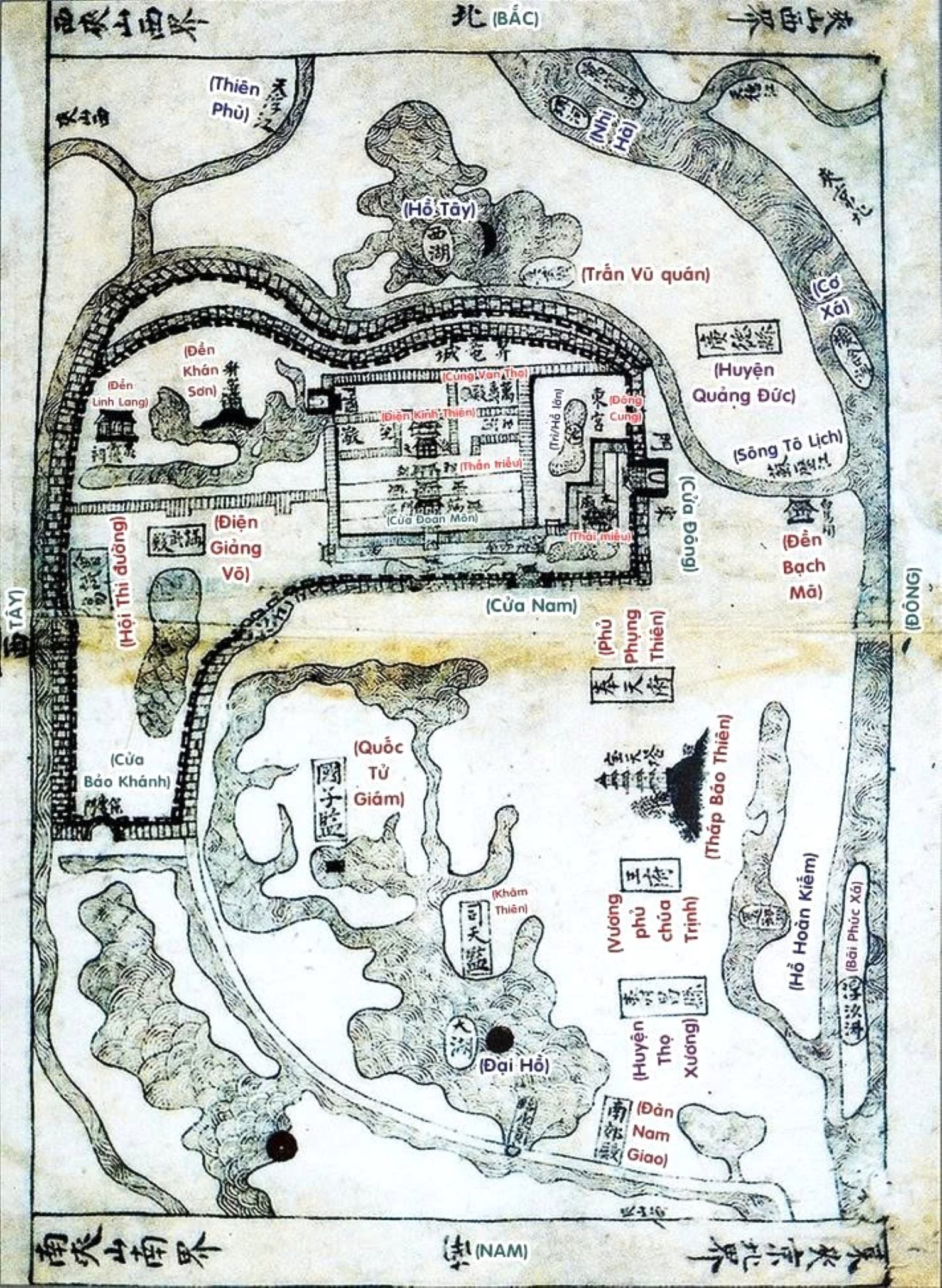 Bản đồ Thăng Long xưa vẽ trên cơ sở Bản đồ Hồng Đức (năm 1490) có vẽ rất rõ dòng chảy sông Tô Lịch.