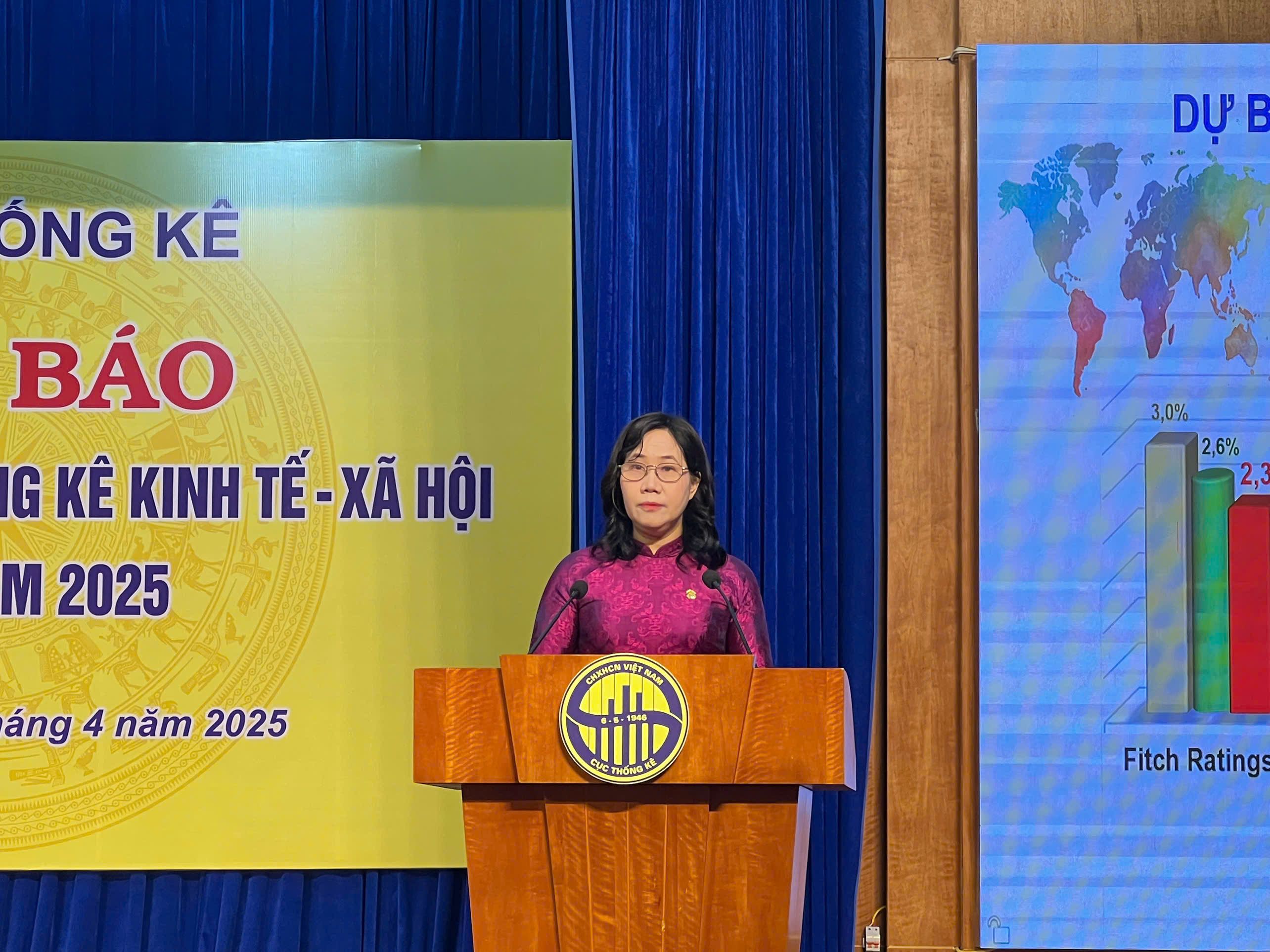 Cục trưởng Thống kê Nguyễn Thị Hương thông báo số liệu thống kê kinh tế-xã hội quý I/2025. Ảnh: QUỲNH TRANG