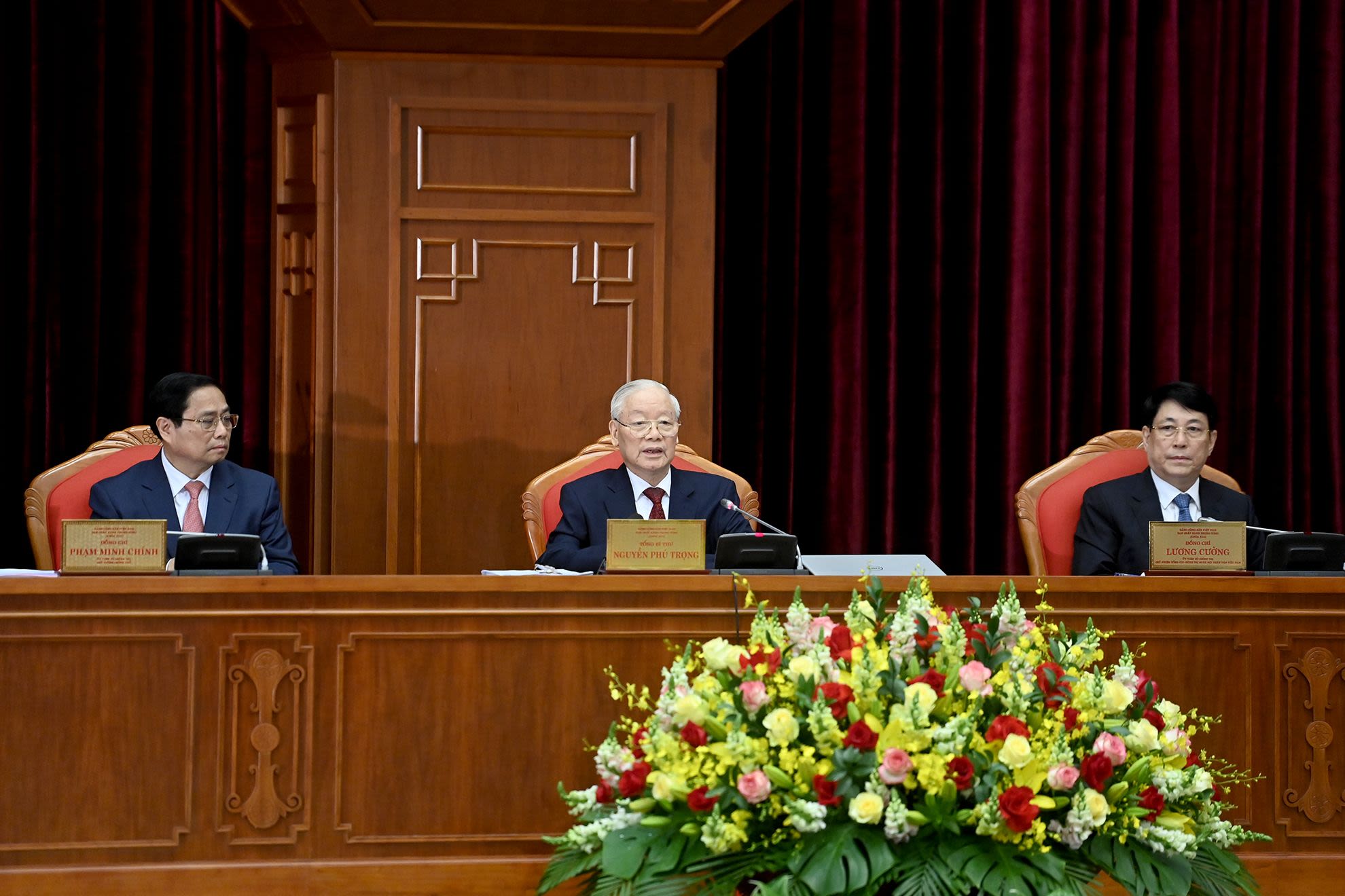 Tổng Bí thư Nguyễn Phú Trọng với các đại biểu dự Kỳ họp bất thường lần thứ hai, Quốc hội khóa XV. (Ảnh: TTXVN)