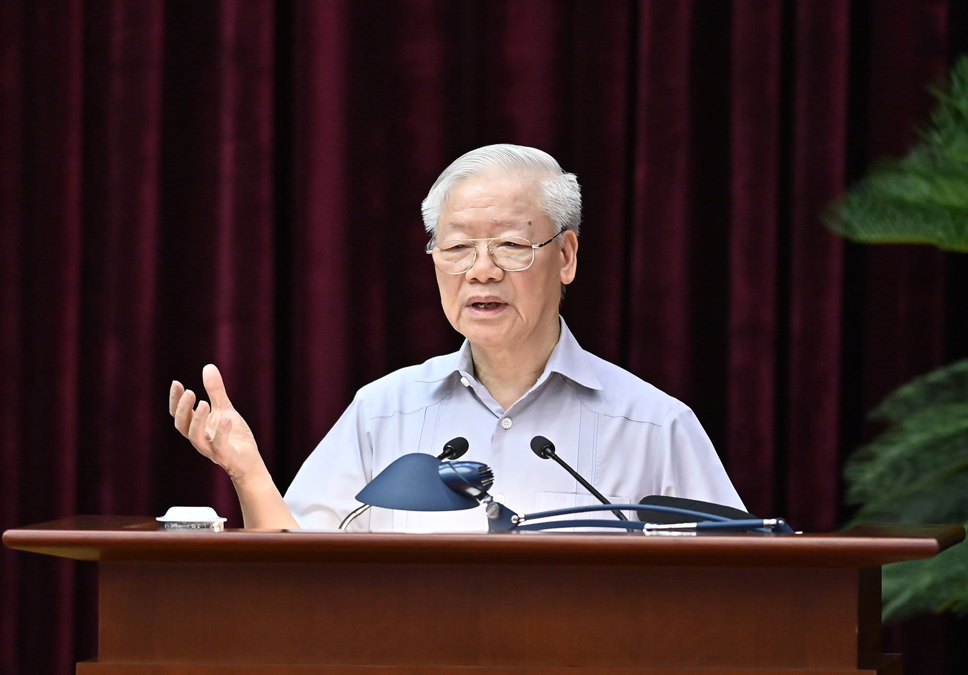 Tổng Bí thư Nguyễn Phú Trọng phát biểu tại Hội nghị toàn quốc tổng kết 10 năm công tác phòng chống tham nhũng, tiêu cực giai đoạn 2012-2022. (Ảnh: ĐĂNG KHOA)