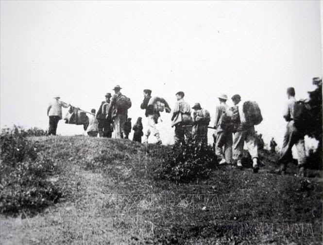 Đêm 17, rạng sáng 18/2/1947, lực lượng của Trung đoàn Thủ đô chia thành từng đơn vị nhỏ cùng nhân dân Liên khu phố I lặng lẽ đi dưới gầm cầu Long Biên, vượt sông Hồng, sông Đuồng, bí mật vượt qua vòng vây an toàn lên chiến khu, kết thúc 60 ngày đêm giam chân quân Pháp trong lòng Hà Nội. Ảnh: Tư liệu/TTXVN