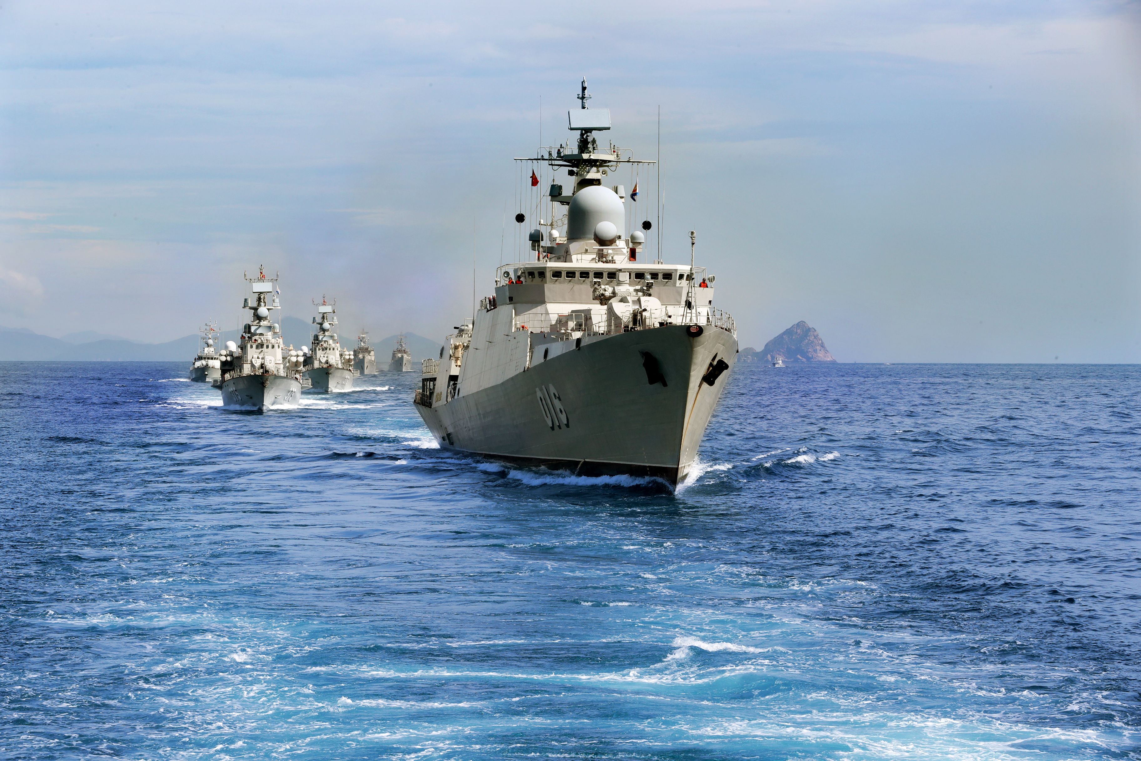 Biên đội tàu chiến đấu của Hải quân nhân dân Việt Nam huấn luyện trên biển.