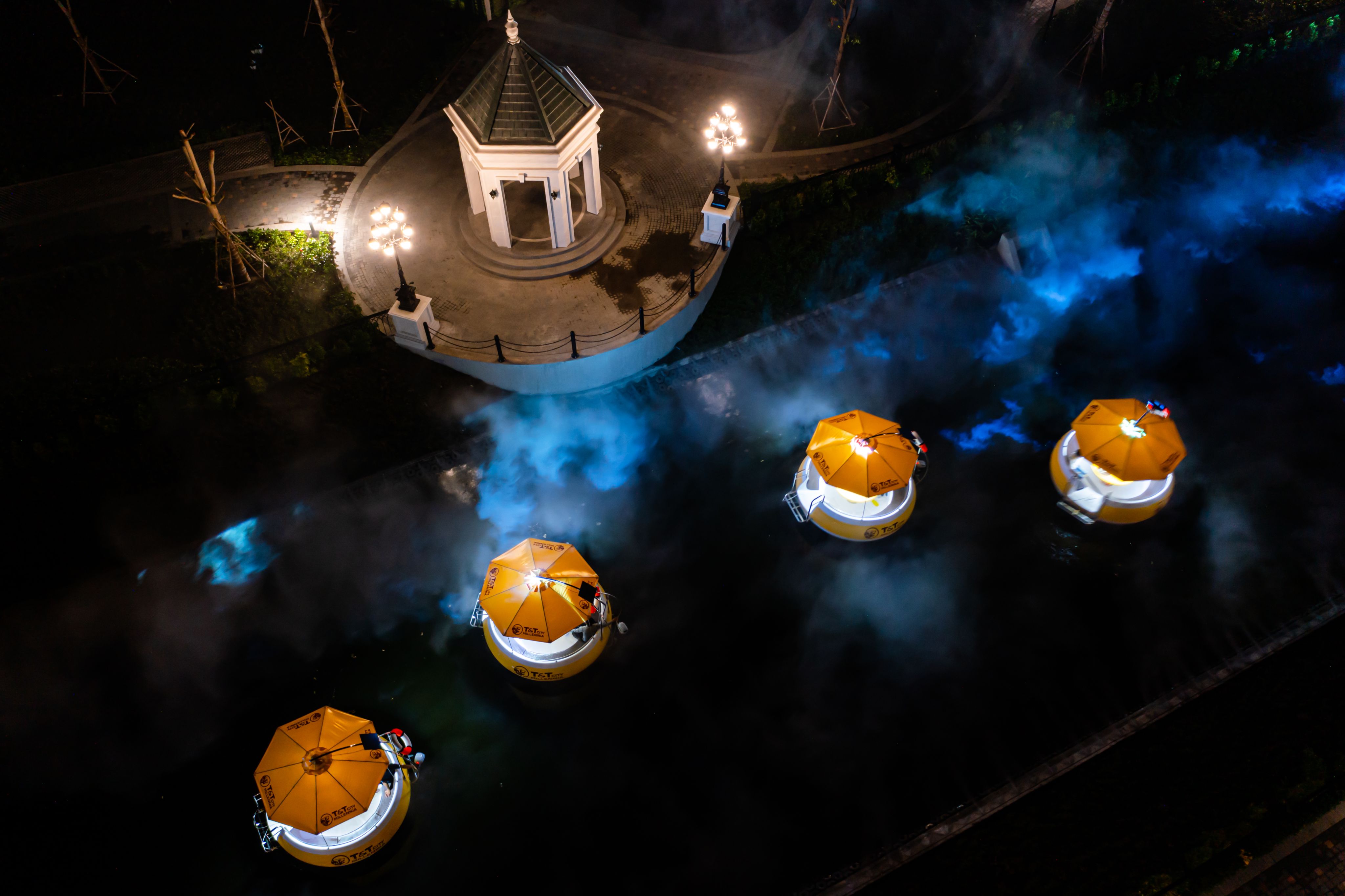 Việc tích hợp hệ thống phun sương, âm thanh, ánh sáng và cả công nghệ trên một tuyến thủy dài 2km giúp khu đô thị sở hữu một sân khấu mở với năng lực tổ chức show định kỳ.