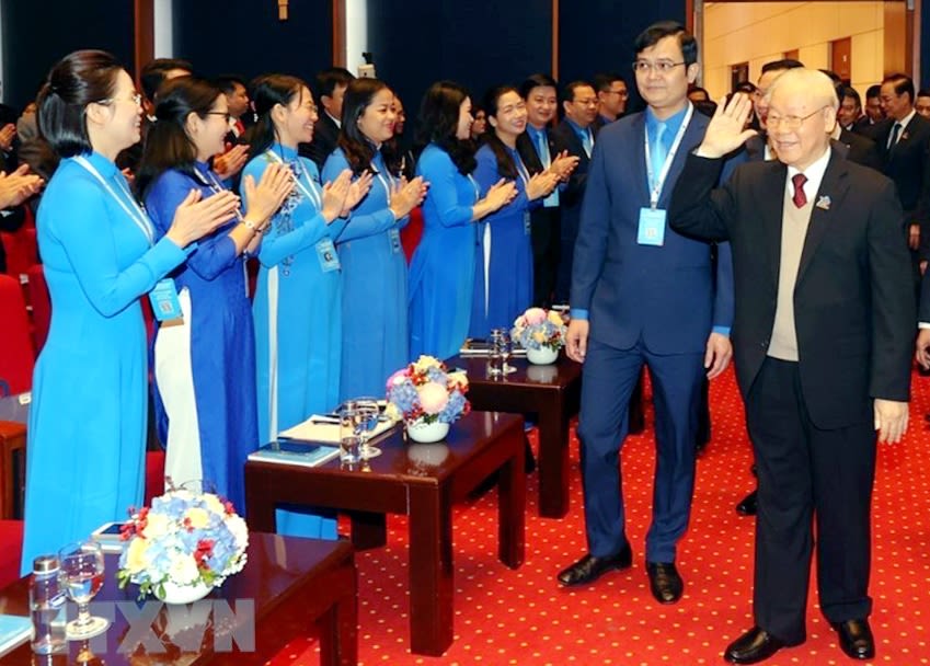 Tổng Bí thư Nguyễn Phú Trọng dự Đại hội Đoàn toàn quốc lần thứ XII. Ảnh: TTXVN