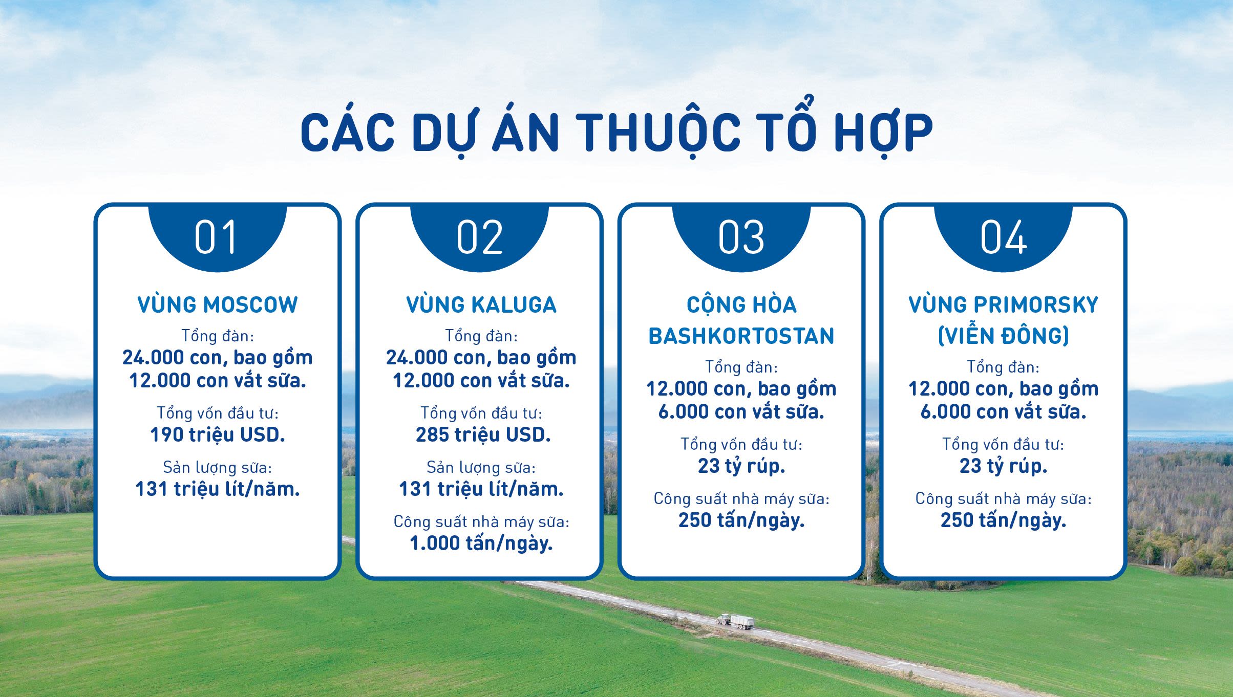 Tại tỉnh Moscow, tập đoàn phát triển trang trại bò sữa công nghệ cao và chuẩn bị xây dựng nhà máy chế biến để phục vụ thị trường tiêu thụ lớn nhất nước Nga, đồng thời triển khai hệ thống phân phối và logistics hiện đại tại thủ đô Moscow, hình thành chuỗi cung ứng khép kín cho sản phẩm TH true MILK Russia.