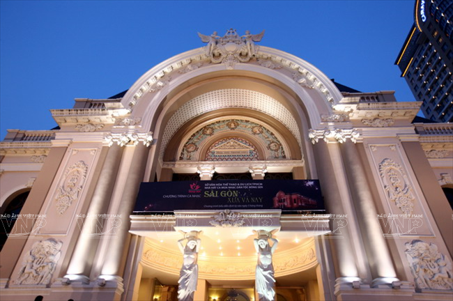 Mặt tiền Nhà hát Lớn Thành phố Hồ Chí Minh chịu ảnh hưởng khá đậm nét lối kiến trúc của Bảo tàng Petit Palais ở Paris - Pháp. (Ảnh: Báo ảnh Việt Nam)