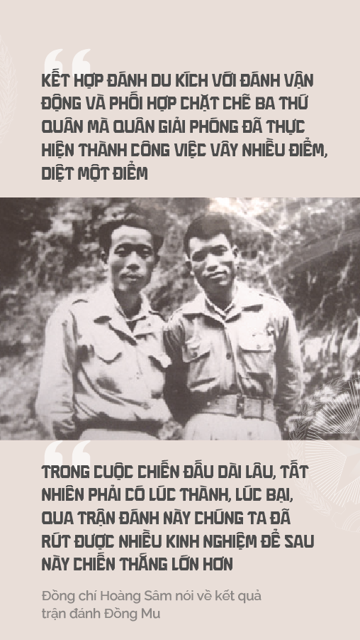 Trong trận đánh Đồng Mu (ngày 4-5/2/1945), Đội chưa thực hiện được mục đích tiêu diệt toàn bộ quân địch như kế hoạch đề ra và lần đầu tiên có đồng đội hy sinh. Trên cương vị là người chỉ huy, Đội trưởng Hoàng Sâm nghiêm túc nhận trách nhiệm về mình đồng thời nhấn mạnh: “Trong cuộc chiến đấu dài lâu, tất nhiên phải có lúc thành, lúc bại, qua trận đánh này chúng ta đã rút được nhiều kinh nghiệm để sau này chiến thắng lớn hơn”.