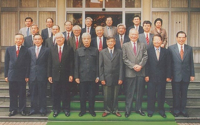 Bức ảnh Bộ Chính trị khóa VIII, khi đồng chí Lê Phả Phiêu (thứ 4 từ phải sang, hàng đầu) làm Tổng Bí thư, đồng chí Phạm Thế Duyệt là Thường trực Bộ Chính trị (thứ 2 từ phải sang, hàng 2).