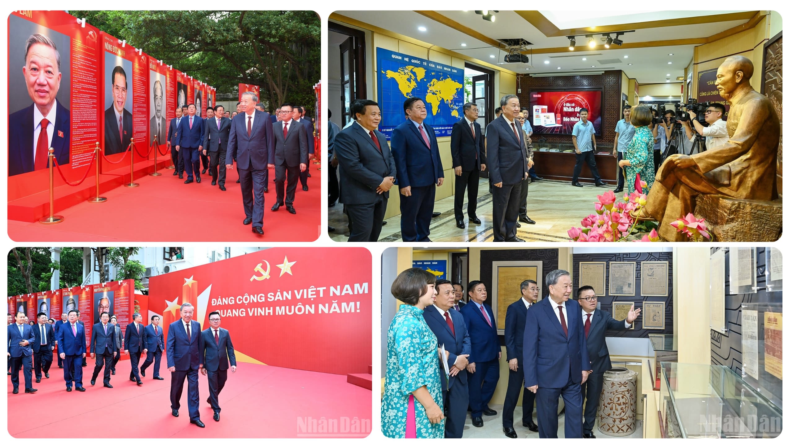 苏林总书记和各位代表在新闻网开开通仪式前参观了《人民报》社历史展示厅和展览空间。