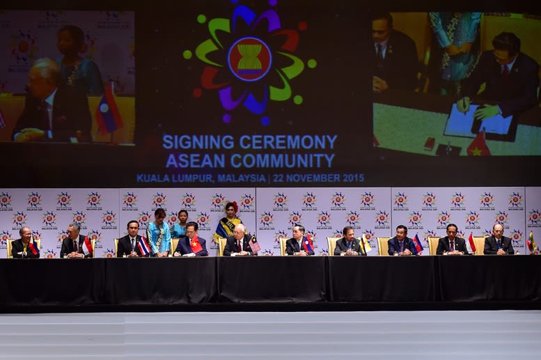 Các nhà lãnh đạo ASEAN ký Tuyên bố Kuala Lumpur 2015 về "Thành lập Cộng đồng ASEAN". (Ảnh: VGP)