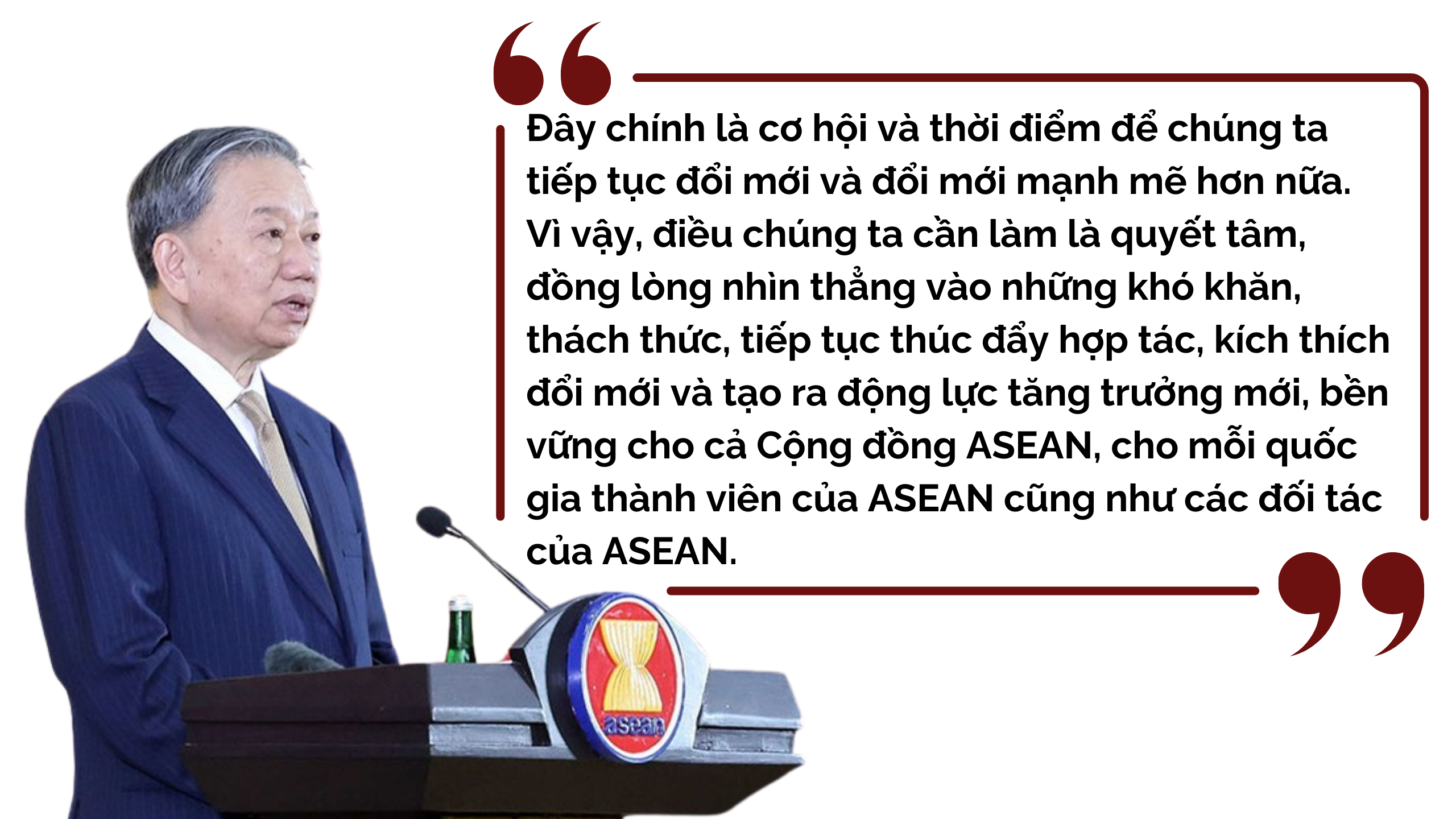 Việt Nam sẽ tiếp tục chung tay cùng các nước ASEAN hiện thực hóa sứ mệnh lịch sử của ASEAN, lan tỏa các câu chuyện thành công của ASEAN. Với các nước thành viên, đó là câu chuyện của tình đoàn kết, gắn bó và tương trợ, tự lực, tự cường, tự chủ chiến lược, triển khai thành công Tầm nhìn Cộng đồng ASEAN 2045, vì lợi ích thiết thực của các nước thành viên và của Cộng đồng. Đối với khu vực, đó là câu chuyện của quan hệ đối tác toàn diện, sâu rộng giữa ASEAN và các đối tác trên tinh thần thiện chí, trách nhiệm, tôn trọng lẫn nhau và cùng có lợi, phấn đấu cho hòa bình, an ninh, ổn định, thịnh vượng và phát triển bền vững. Với thế giới, là câu chuyện trao truyền hy vọng và cảm hứng; ASEAN là hình mẫu thành công về liên kết, mang lại niềm tin và động lực cho đoàn kết, hợp tác phát triển ở nhiều nơi trên thế giới, gắn kết quan tâm của các khu vực với quan tâm của toàn cầu, tạo sức mạnh cộng hưởng cùng xử lý hiệu quả các vấn đề toàn cầu, hiện thực hoá khát vọng chung về hoà bình và phát triển.