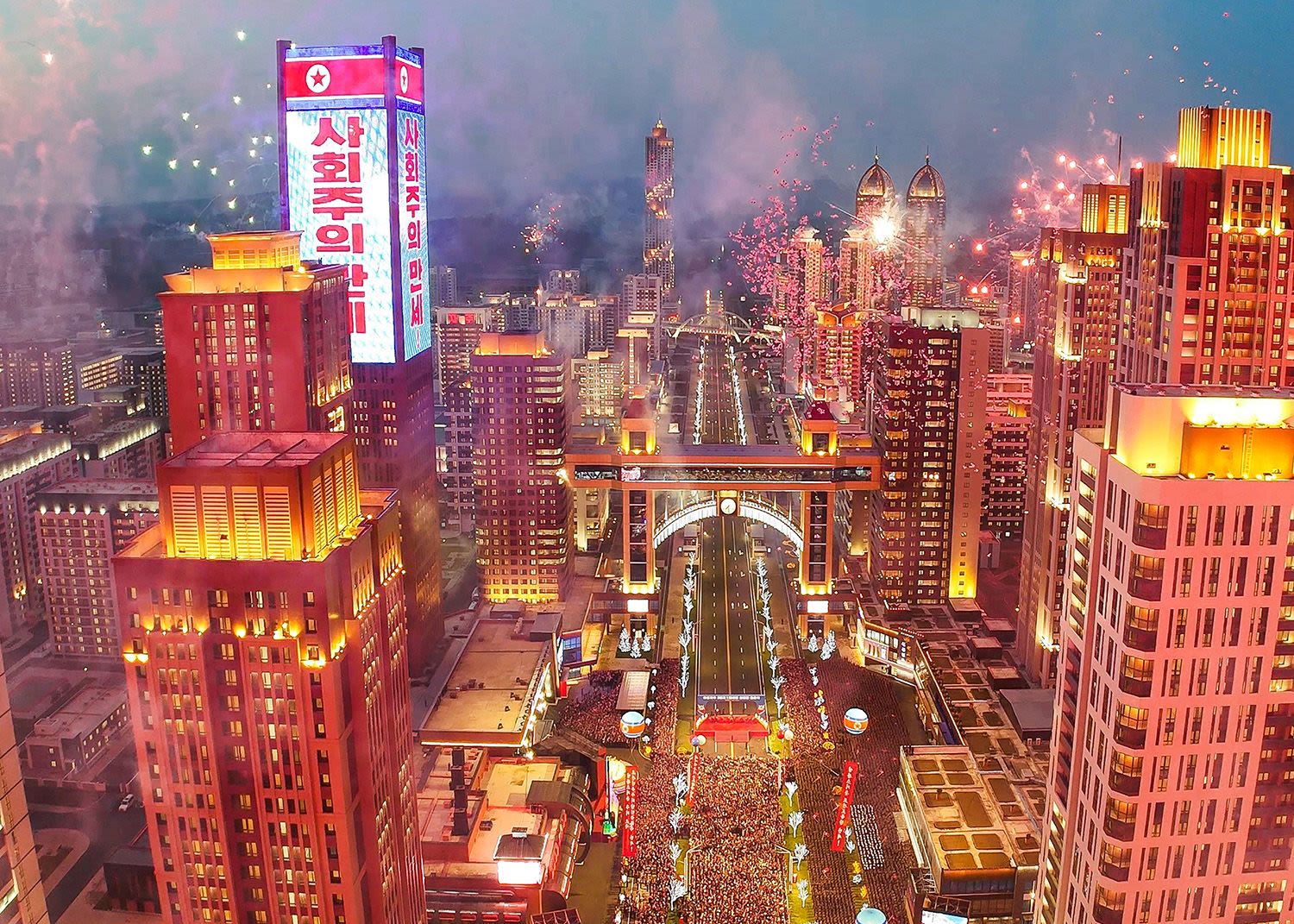 Церемония сдачи в эксплуатацию 10 тысяч новых квартир в рамках третьего этапа программы строительства 50 тысяч домов в Пхеньяне, 16 апреля 2025 года. (Фото: Рёнхап/ВИА)