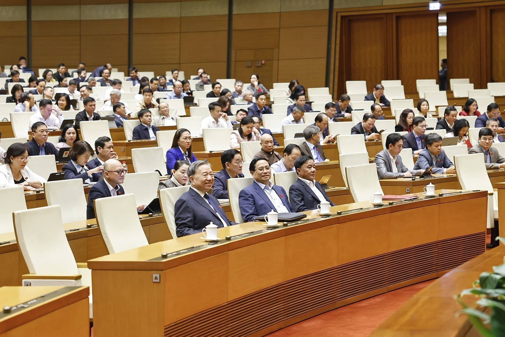 Liên quan tới mô hình chính quyền địa phương 2 cấp, chúng ta đang từng bước sắp xếp lại, hướng tới bộ máy tinh gọn, hiệu lực, hiệu quả. Đây là nội dung rất mới, rất quan trọng, rất nhạy cảm, liên quan trực tiếp đến đời sống người dân và cán bộ cơ sở. Tôi mong các đại biểu cho ý kiến cụ thể: Mô hình 2 cấp phải thiết kế thế nào để dân không bị xa chính quyền, không bị đứt gãy dịch vụ công? Đừng để tuyên bố tinh gọn bộ máy mà sinh thêm tầng nấc xin-cho ngoài thực tế. Điều quan trọng nữa là chính quyền cơ sở phải có quyền gì, phải có nguồn lực nào cho nhiệm vụ kiến tạo phát triển ở cơ sở. Thêm những gì cho hành lang pháp lý cho nhiệm vụ này.