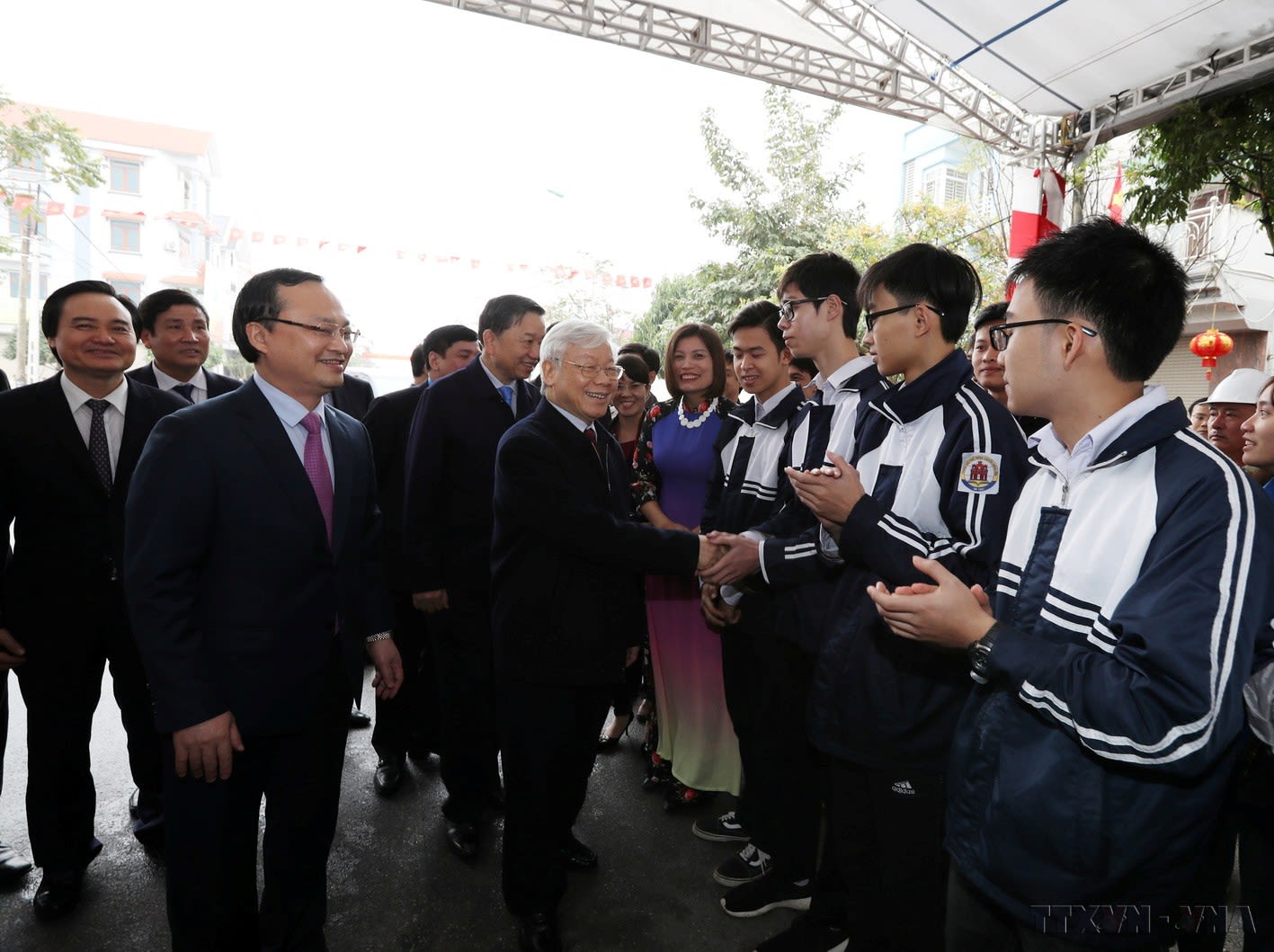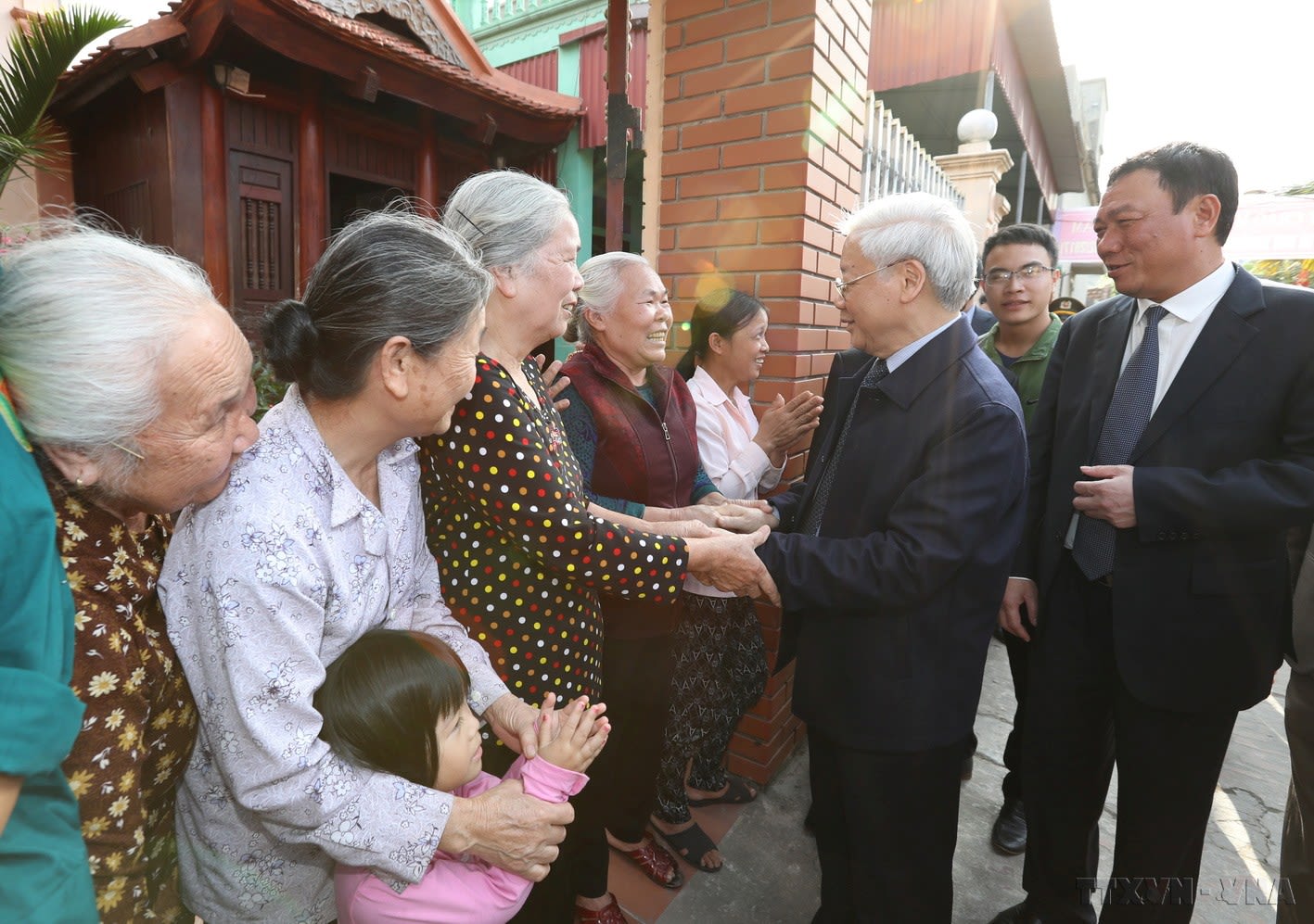 Tổng Bí thư Nguyễn Phú Trọng với nhân dân tại làng Hành Thiện, xã Xuân Hồng, huyện Xuân Trường, tỉnh Nam Định chiều 8/2/2017. Ảnh: TTXVN