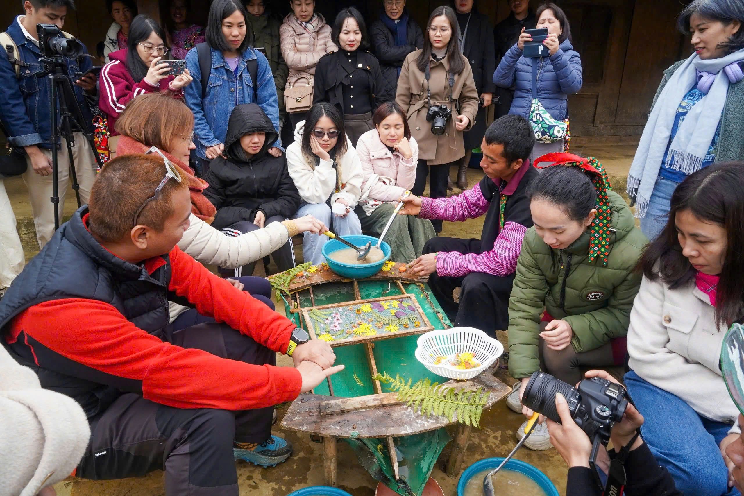 Chu liền đáp: “Vào những tháng ít hoa, ít quả, chúng tôi sẽ cho du khách thử nghiệm hoạt động vẽ sáp ong trên váy của người H’mông hay kể cho họ nghe những câu chuyện về thầy mo, thầy cúng. Khách du lịch Hàn Quốc đặc biệt thích hoạt động này. Với hôm lạnh giá, chúng tôi cho du khách trải nghiệm dùng cối xay ngô để làm mèn mén, rồi kể cho họ nghe câu chuyện về ‘Vợ chồng A Phủ’ của tác giả Tô Hoài. Hầu hết các đoàn khách quốc tế đều có phiên dịch viên đi cùng nên việc giao tiếp không quá khó khăn”.