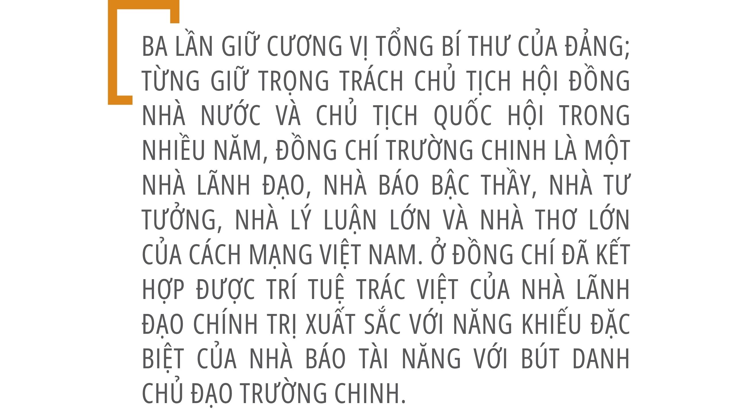 Trong nền báo chí cách mạng Việt Nam 100 năm qua và hơn 95 năm sự nghiệp cách mạng của Đảng, của nhân dân ta, hiếm nhà lãnh đạo nào có đóng góp to lớn vào sự nghiệp báo chí như đồng chí Trường Chinh.