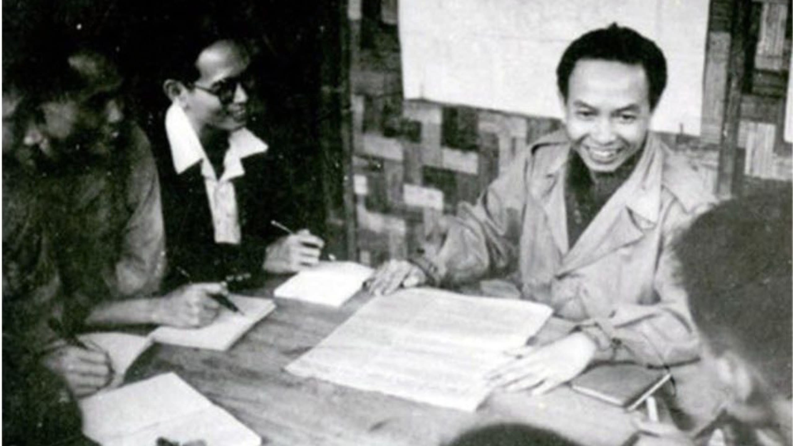 Đồng chí Trường Chinh trao đổi công tác báo chí với cán bộ Báo Nhân Dân ở Việt Bắc.