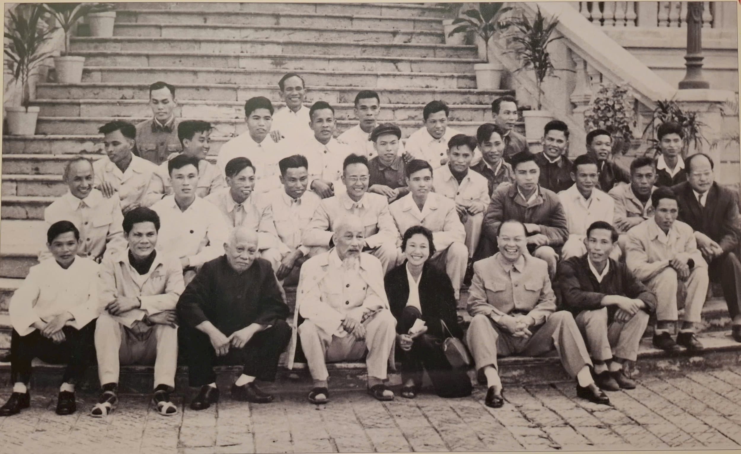 Chủ tịch Hồ Chí Minh, đồng chí Trường Chinh (hàng đầu, thứ 2 từ phải sang) với nhóm phóng viên báo chí phục vụ Đại hội lần thứ III của Đảng (tháng 9/1960). Ảnh: TTXVN