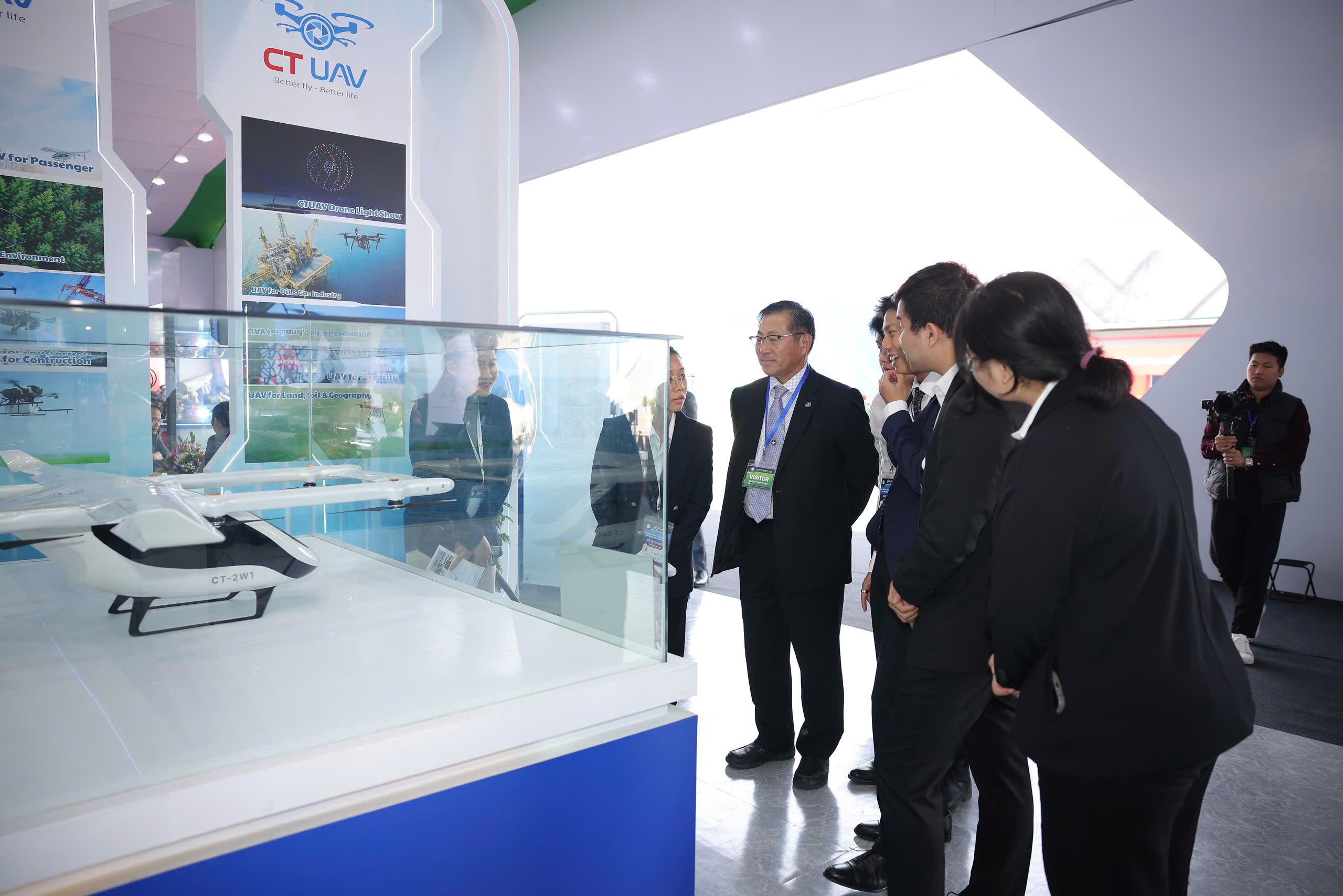Tại không gian trưng bày của Bộ Khoa học và Công nghệ, CT UAV (một thành viên CT Group), giới thiệu mô hình 1:6 của nguyên mẫu chiếc UAV điện chở khách mang tên CT-2W1.