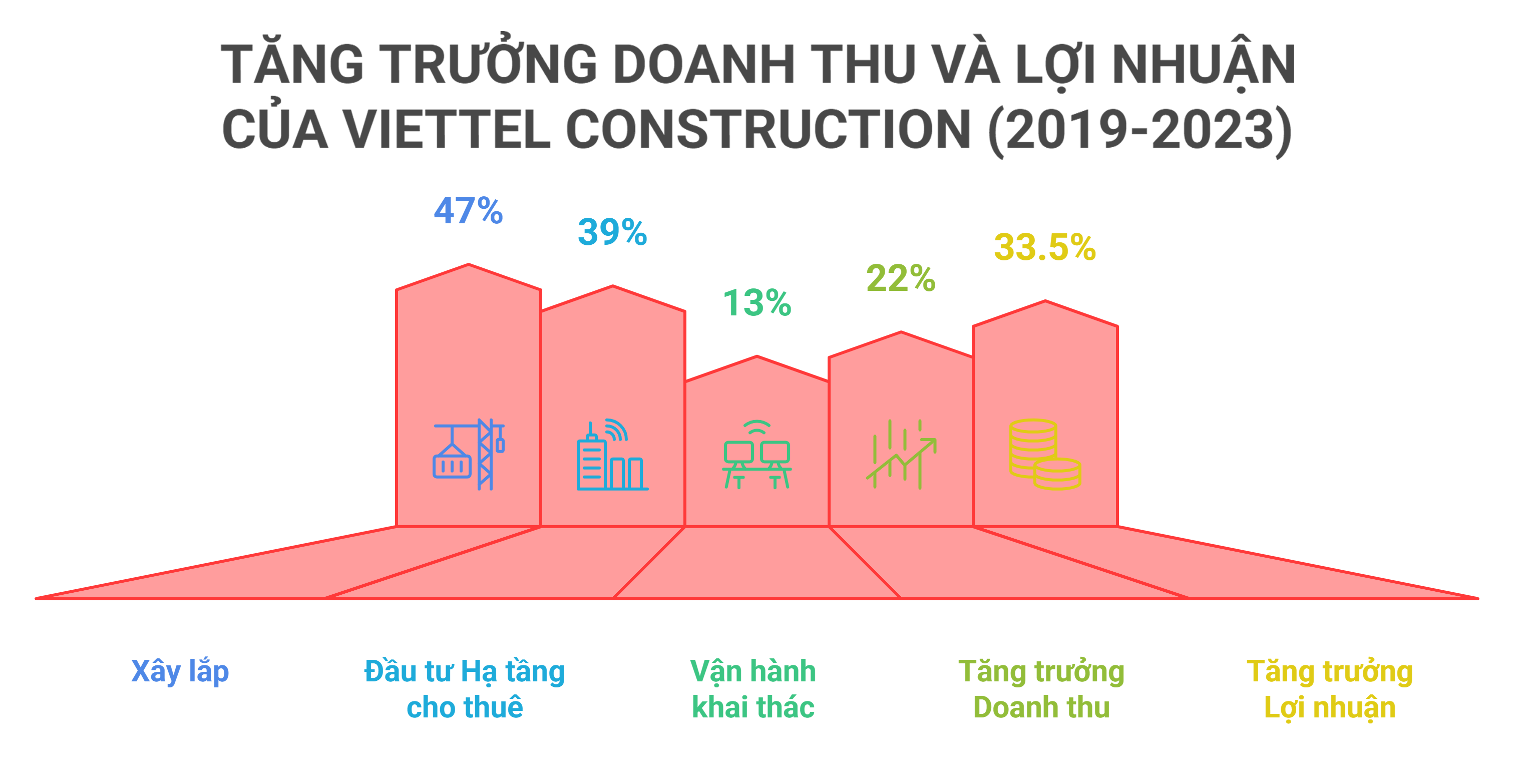 Kết thúc năm 2024, Viettel Construction hoàn thành 100% kế hoạch năm với doanh thu đạt 12.666 tỷ đồng, tăng 1.267,1 tỷ đồng so với năm 2023, lợi nhuận trước thuế đạt 671,8 tỷ đồng, tăng 35,8 tỷ đồng so với năm 2023, góp phần thiết thực vào mục tiêu tăng năng suất lao động và định hướng phát triển kinh tế xã hội của đất nước, đặc biệt là tăng thu nhập, nâng cao đời sống người lao động, hướng đến mục tiêu phát triển nhanh và bền vững, thoát khỏi bẫy thu nhập trung bình.