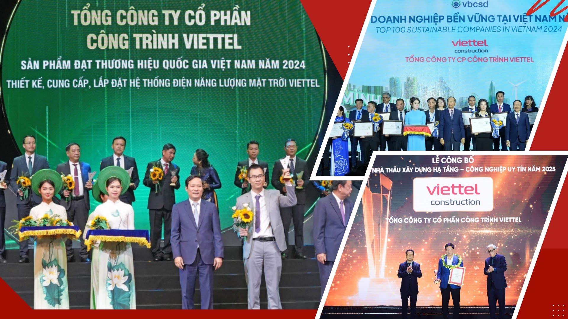 Dựa trên kết quả Viettel Construction đã đạt được, năm 2024 Tổng Công ty có mặt trong danh sách 20 giải thưởng uy tín trong và ngoài nước như: Top 50 Công ty tăng trưởng xuất sắc Việt Nam; Top 50 Công ty lợi nhuận “xuất sắc” Việt Nam; Giải Chuyển đổi số; Top 1 Nơi làm việc tốt nhất Việt Nam lĩnh vực Xây dựng/Kiến trúc (Anphabe); Top 50 Công ty niêm yết tốt nhất Việt Nam (Forbes), Giải thưởng chuyển đổi số Make In VietNam