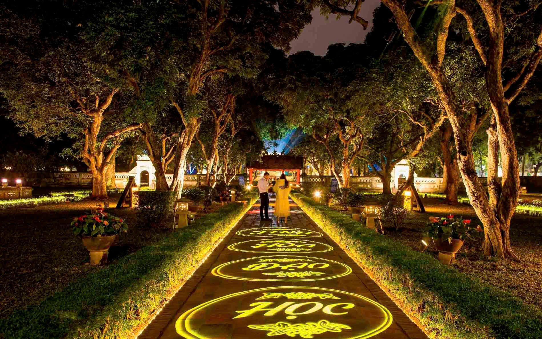 体验文庙-国子监“道学精华”夜游线路的亮点就是3D投影技术。太学屋区的前堂屋的外立面被改造成一个巨大的屏幕,帮助游客参观体验越南学道中最精髓的价值。