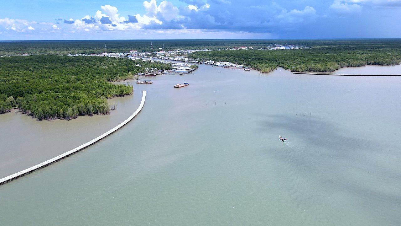 Kè phòng chống sạt lở khu vực ven bờ Biển Đông tỉnh Cà Mau.