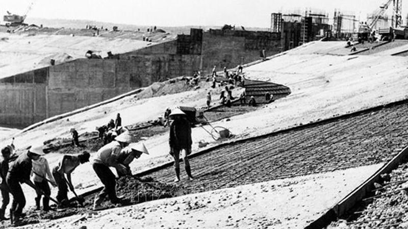 Thanh niên xung phong Thành phố Hồ Chí Minh tham gia xây dựng công trình thủy lợi Trị An, tỉnh Đồng Nai. Ảnh: TTXVN