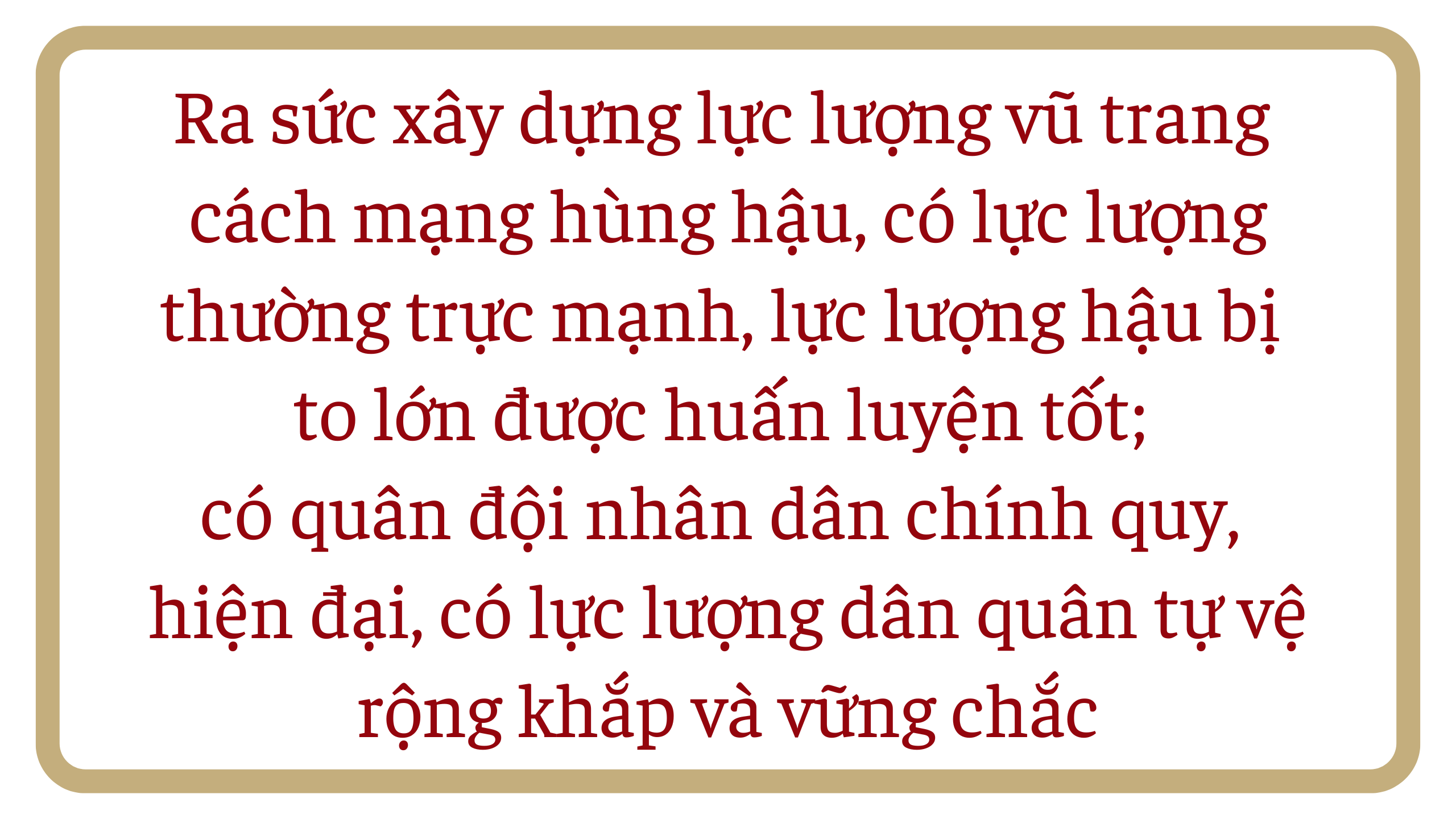 Trước yêu cầu nhiệm vụ trong tình hình mới, Ban Chấp hành Trung ương Đảng, trực tiếp là Bộ Chính trị và Quân ủy Trung ương, tổ chức nghiên cứu phương hướng xây dựng nền quốc phòng toàn dân, củng cố thế chiến lược phòng thủ đất nước; đồng thời khẩn trương kiện toàn tổ chức biên chế lực lượng vũ trang, điều chỉnh quân số phù hợp với chức năng, nhiệm vụ thời bình, đẩy mạnh xây dựng chính quy, hiện đại trên phạm vi cả nước.