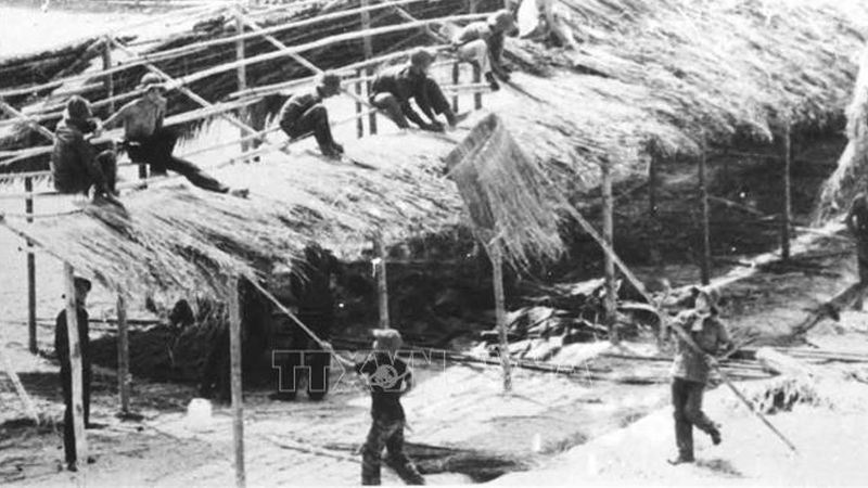 Thanh niên xung phong dựng doanh trại đóng quân tại khu kinh tế mới. Ảnh: TTXVN