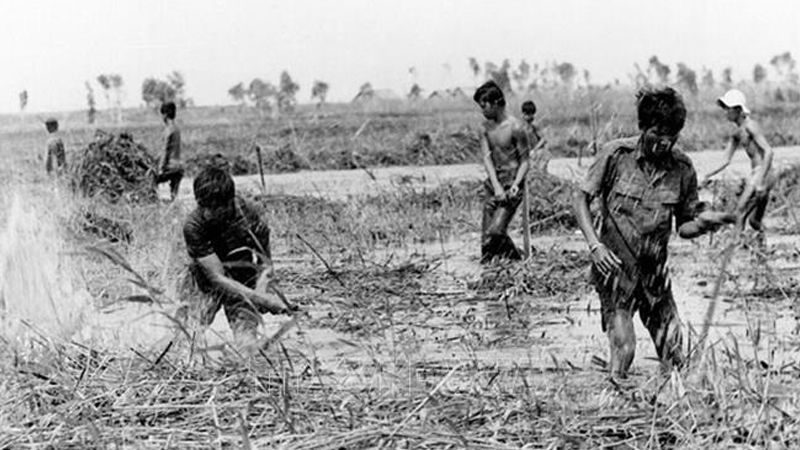 Thanh niên xung phong Thành phố Hồ Chí Minh khai hoang đất để trồng lúa ở tỉnh Kiên Giang. Ảnh: TTXVN