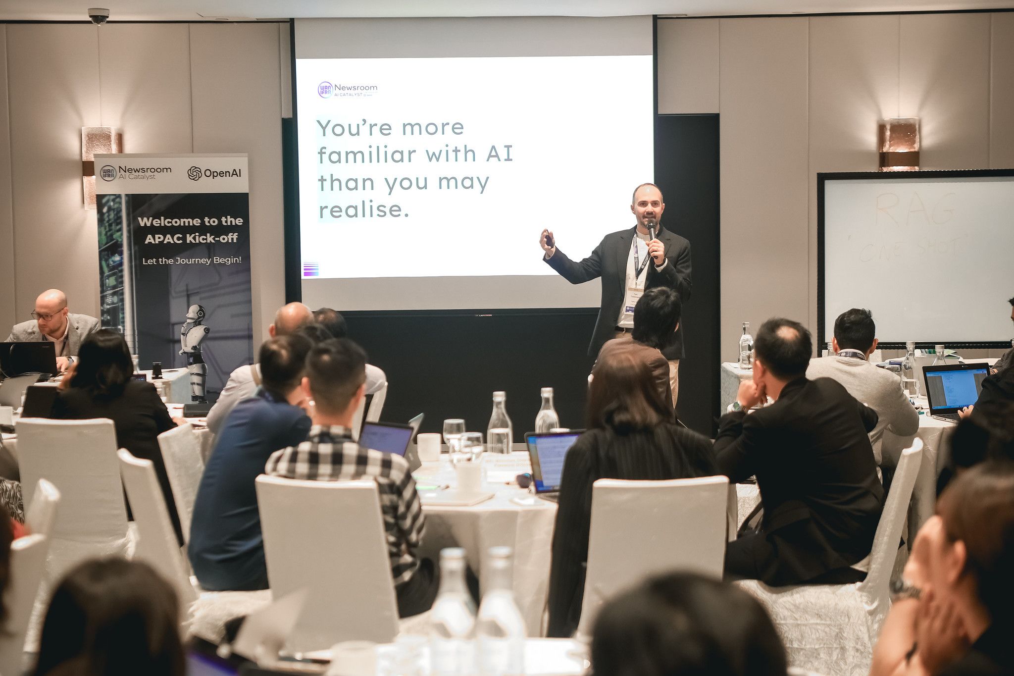Ảnh trong bài: Hai chuyên gia Fergus Bell và Tom Trewinnard tham gia giảng dạy trong chương trình Newsroom AI Catalyst 2024 châu Á-Thái Bình Dương của Hiệp Hội báo chí xuất bản thế giới (WAN-IFRA APAC Newsroom AI Catalyst 2024), tháng 11/2024.