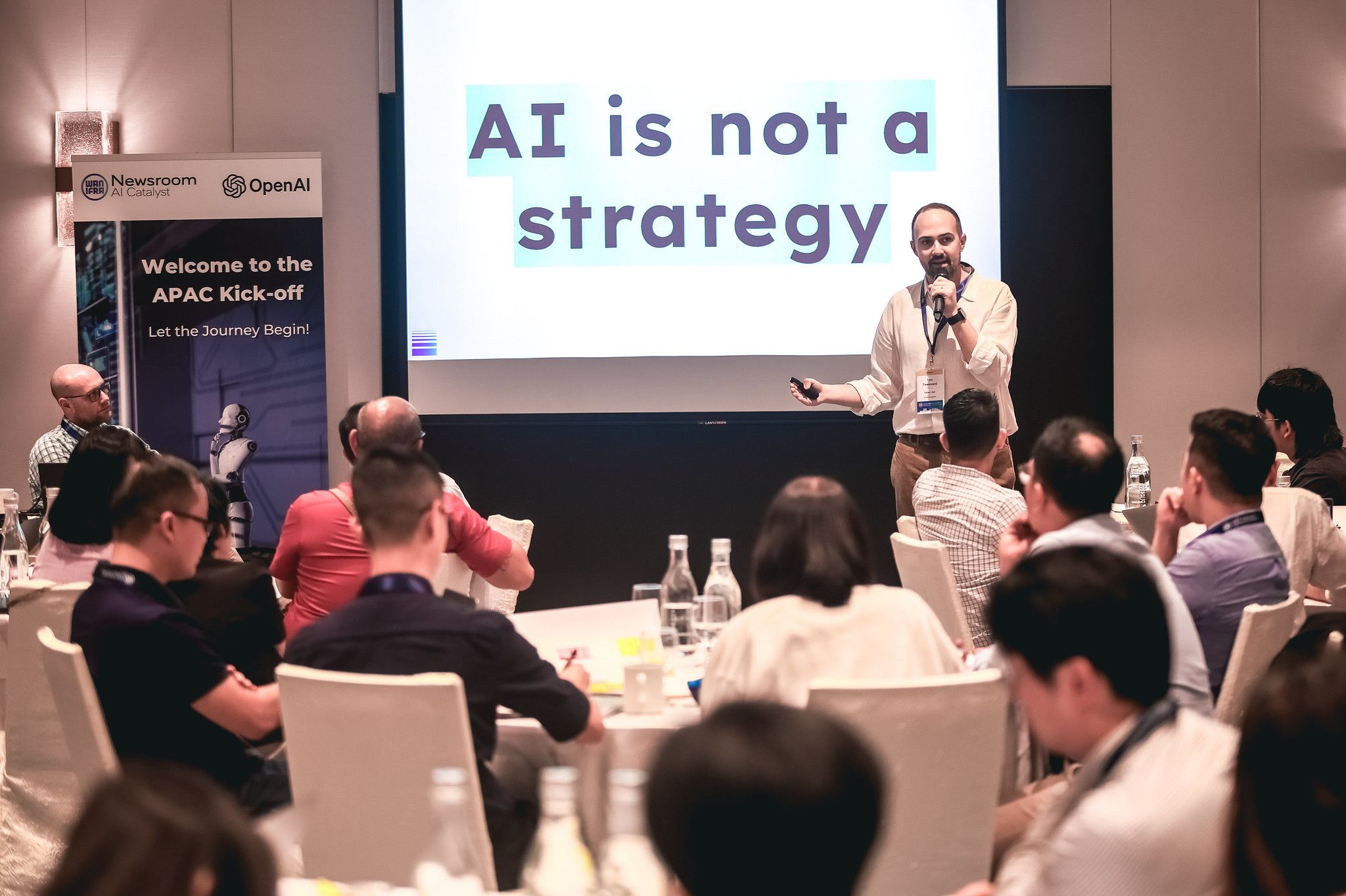 Ông Tom Trewinnard: Các nước đang phát triển như Việt Nam có cơ hội đón nhận AI theo cách đầy linh hoạt và sáng tạo. Tương tự như cách Đông Nam Á từng bỏ qua giai đoạn máy tính để bàn để nhảy thẳng lên thiết bị di động, các tòa soạn cũng có thể tận dụng AI để tạo ra những bước chuyển mạnh mẽ, thay vì đi theo lối mòn của những mô hình báo chí truyền thống.
