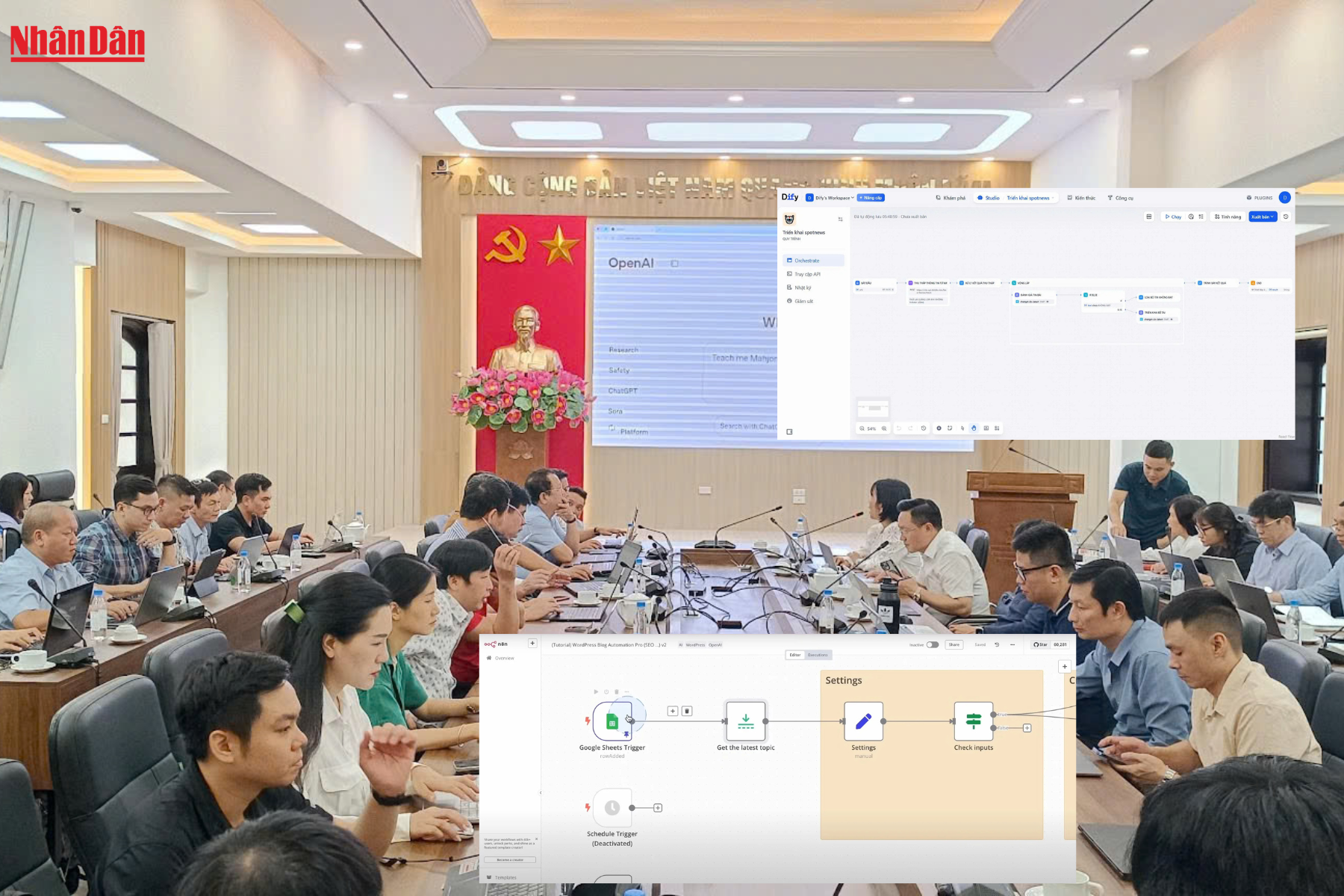 Phóng viên, biên tập viên Báo Nhân Dân học cách tự xây dựng công cụ cho riêng mình trong lớp học về AI tháng 4/2025.