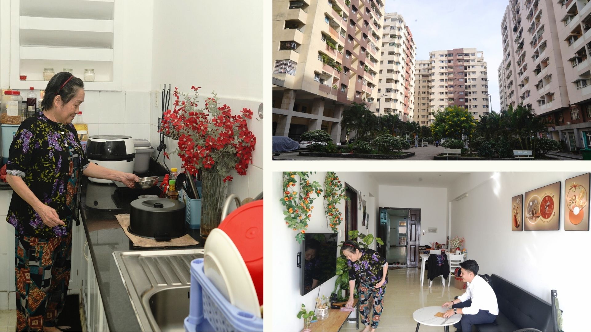 Căn hộ này gồm hai phòng ngủ, bếp, chỗ phơi quần áo bố trí rất gọn gàng mà tiện nghi. Khác hẳn với căn nhà xưa kia, nhỏ như cái “hộp”, xe chạy vào hẻm ngoằn ngoèo, dẫn ra con kênh đen. Thật sự một nơi ở mới rất đàng hoàng, giúp cuộc sống của chúng tôi đổi thay hoàn toàn.