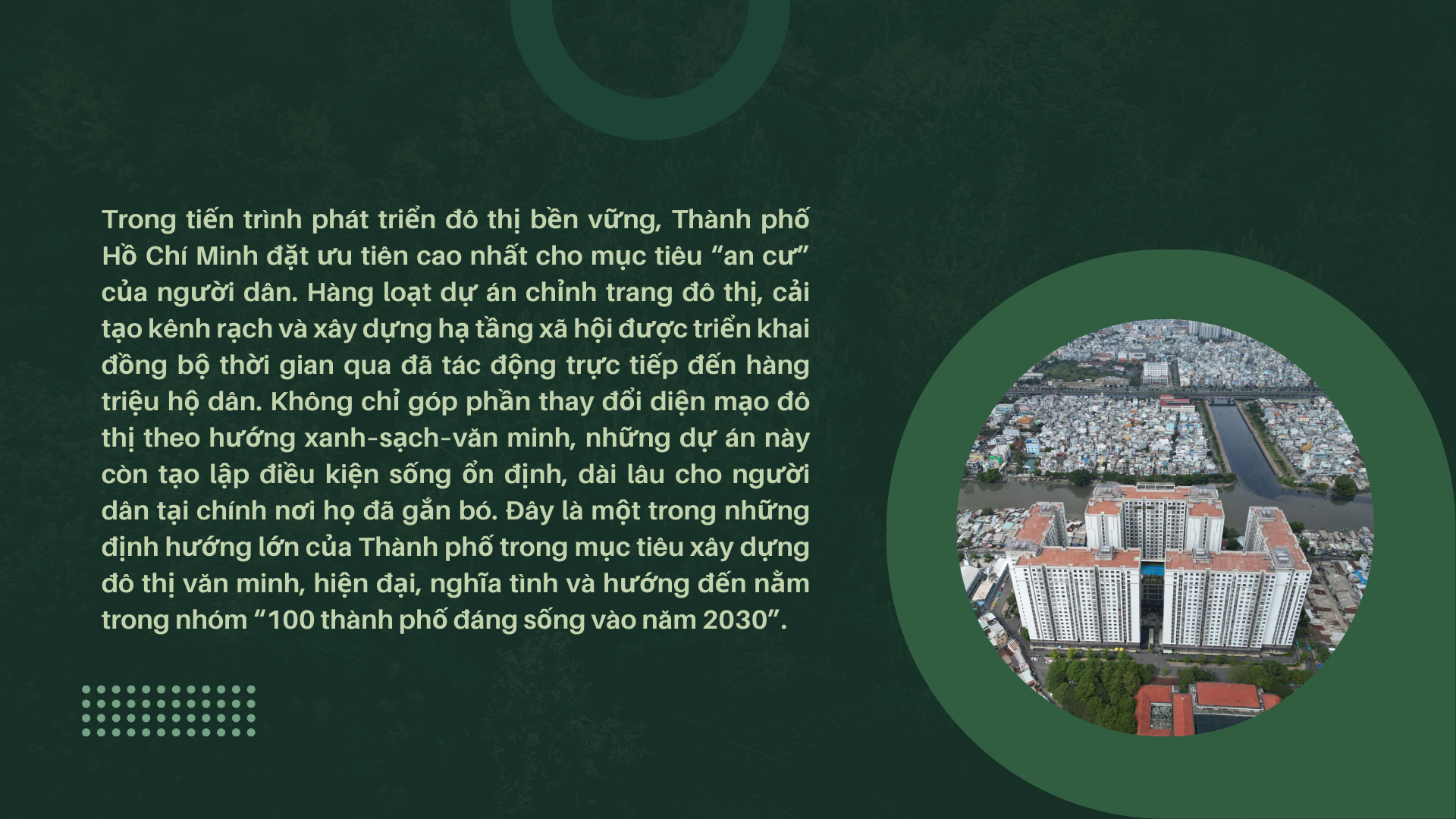Với quyết tâm hoàn thành các chương trình chỉnh trang đô thị, cải tạo kênh rạch và phát triển nhà ở xã hội, Thành phố Hồ Chí Minh đang từng bước xây dựng một môi trường sống văn minh, an toàn và bền vững hơn. Nơi mỗi người dân được “an cư” để cùng chung tay phát triển cộng đồng, vun đắp tương lai cho một đô thị hiện đại mang đậm bản sắc nghĩa tình.