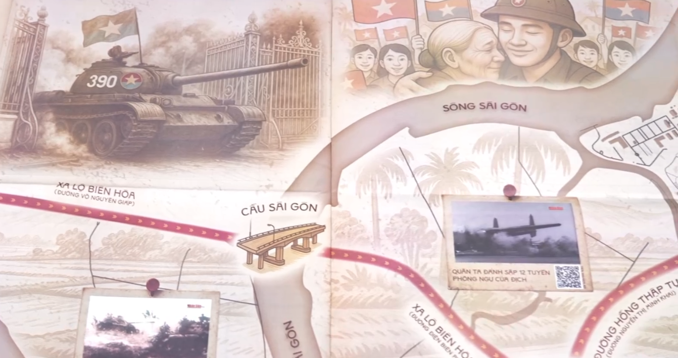 Triển lãm cũng sẽ tái hiện các trận đánh lịch sử, bắt đầu từ Chiến dịch Tây Nguyên với đỉnh cao là Chiến dịch Hồ Chí Minh, mà nói như vị tổng tư lệnh Quân đội Nhân dân Việt Nam, Đại tướng Võ Nguyên Giáp thì “Ngày toàn thắng 30 tháng 4 năm 1975 đi vào lịch sử như một sự kết thúc chiến lược vô song. Tổ quốc ta hoàn toàn độc lập, thống nhất”. Người xem cũng có thể tương tác bằng cách quét mã QR để xem thông tin các trận đánh qua website với phần đồ họa tương tác mới lạ.