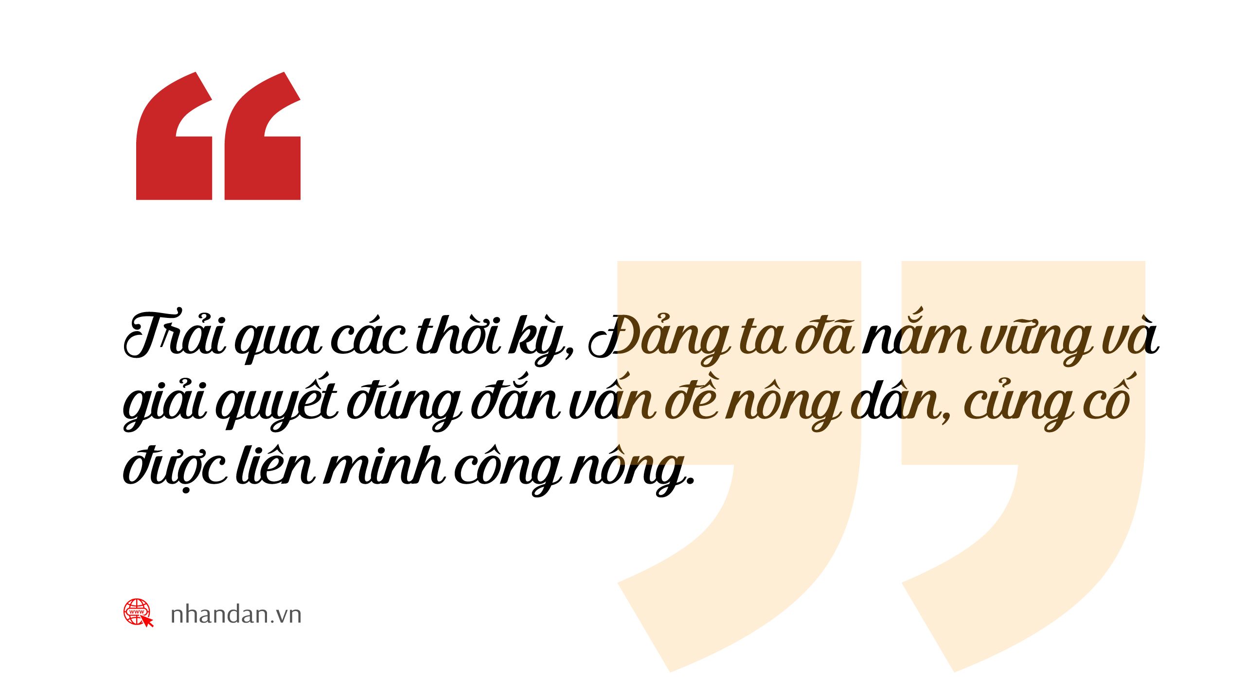 Đảng ta đã đấu tranh chống những xu hướng hữu khuynh và "tả" khuynh đánh giá thấp vai trò của nông dân là quân chủ lực của cách mạng, là bạn đồng minh chủ yếu và tin cậy nhất của giai cấp công nhân, là lực lượng cơ bản cùng với giai cấp công nhân xây dựng chủ nghĩa xã hội. Kinh nghiệm của Đảng ta trong quá trình cách mạng đã chỉ rõ là nơi nào, lúc nào cán bộ ta giải quyết tốt lợi ích thiết thân của nông dân, nắm vững nguyên tắc liên minh công nông, thì nơi đó, lúc đó cách mạng đều tiến mạnh.