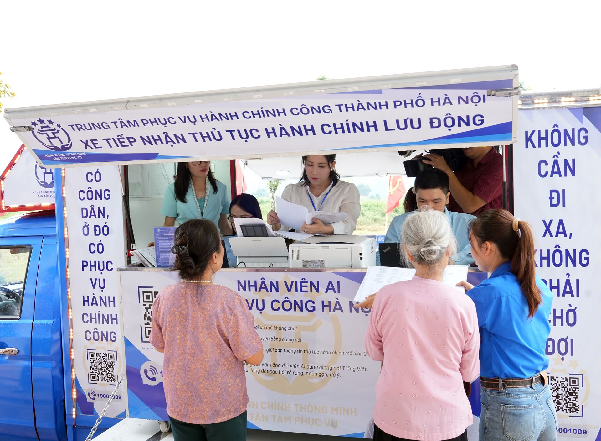 Những ngày gần dây, mô hình Dịch vụ công lưu động với những chiếc xe gắn khẩu hiệu “Ở đâu có công dân, ở đó có phục vụ hành chính công”, “Không cần đi xa, không phải chờ đợi”… đã đến tận các xã xa trung tâm như Mỹ Đức, Ba Vì, xã đảo Minh Châu hay các khu dân cư đông đúc ở các xã Đại Thanh, Đông Anh... để hỗ trợ người dân thực hiện thủ tục hành chính ngay tại chỗ.