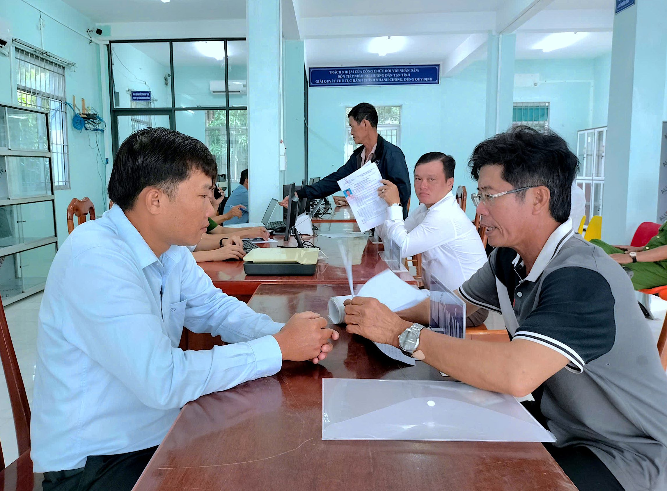 Cán bộ xã Đất Mũi hướng dẫn người dân thực hiện các thủ tục hành chính