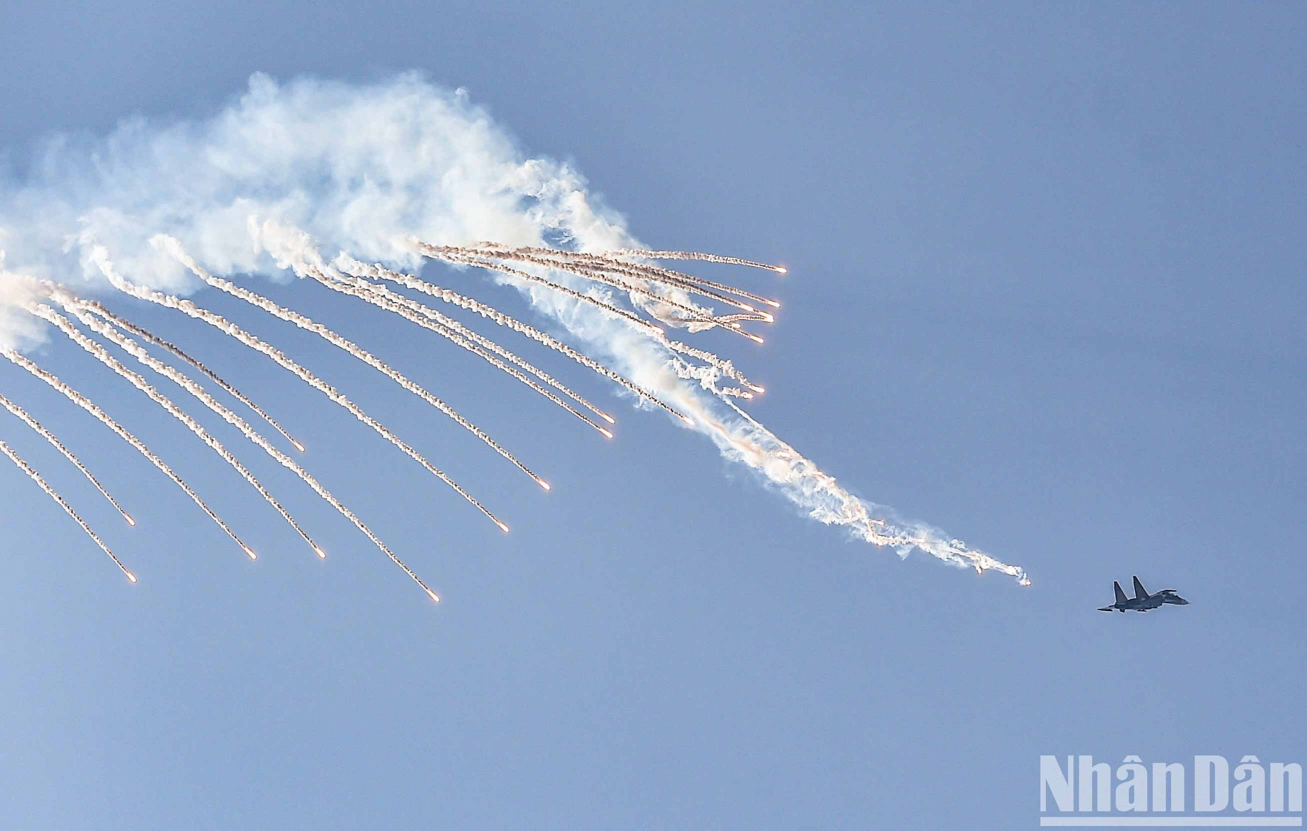 苏-30MK2战斗机在空中进行热阱攻击。(成达 摄)