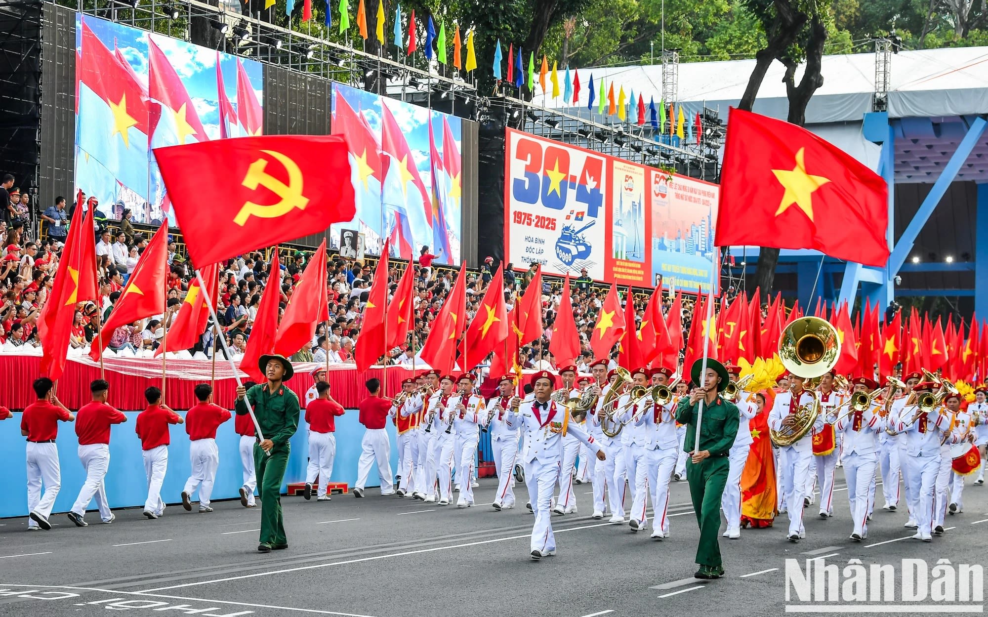 今天,在豪情激荡的历史性4·30日氛围中,越南共产党中央委员会、越南国会、国家主席、越南政府、越南祖国阵线中央委员会,在以敬爱的胡志明主席名字命名的英雄城市,怀着无比激动与自豪的心情隆重举行“南方解放、国家统一50周年”庆典——这是越南民族建国护国历史上最辉煌的里程碑,标志着经过30年顽强斗争,为独立、自由和国家统一的伟大战斗取得最终胜利,结束了旧殖民主义和新殖民主义长达一个多世纪的统治,把国家带入一个新的纪元——民族独立和社会主义的纪元。