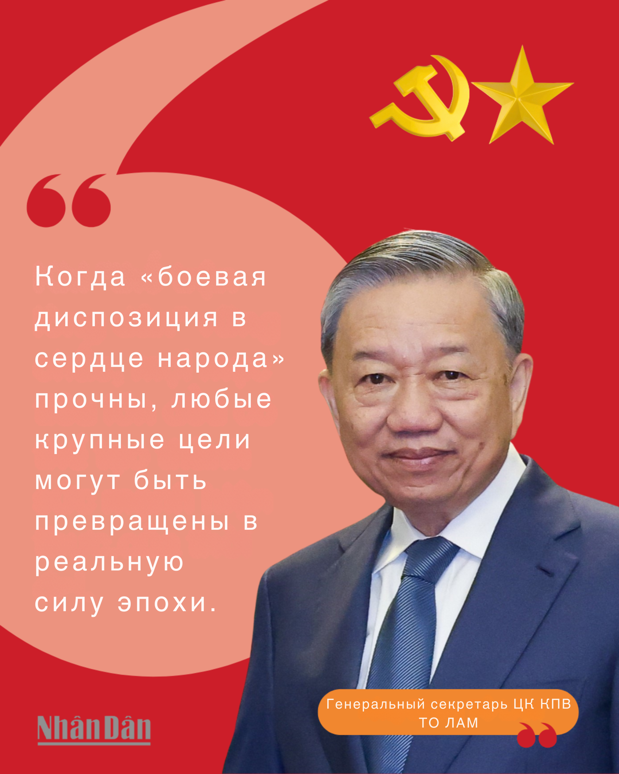 В целом, чтобы воспользоваться возможностями 2026 года и последующих лет, я хотел бы подчеркнуть одну очень простую истину: страна становится сильнее благодаря силе каждого человека. Каждый кадровый работник и член Партии должен быть более образцовым; каждый гражданин – более старательным; каждое предприятие – более инновационным; каждая семья – более дисциплинированной и счастливой. Все это вместе взятое образует мощную силу, совершает новый прорыв и приводит страну к быстрому и устойчивому развитию в новую эпоху.